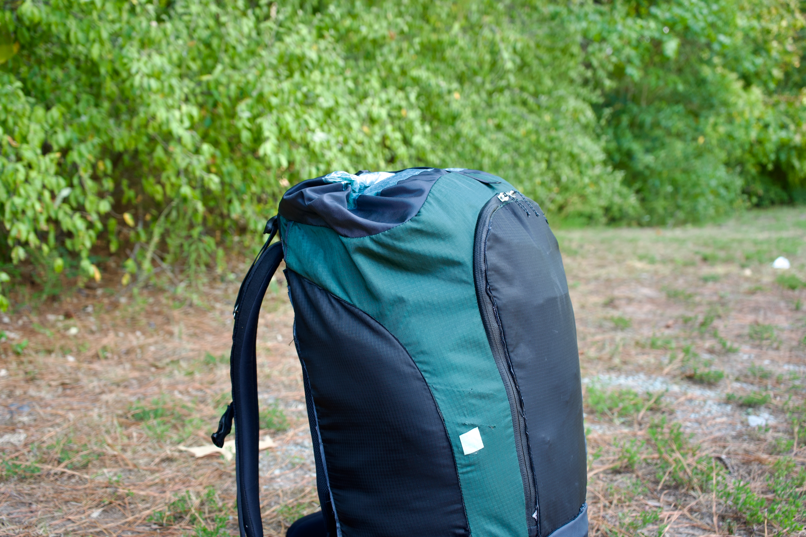 This tactic enabled us to remove a large portion of the heavier fabric on the top of the pack.