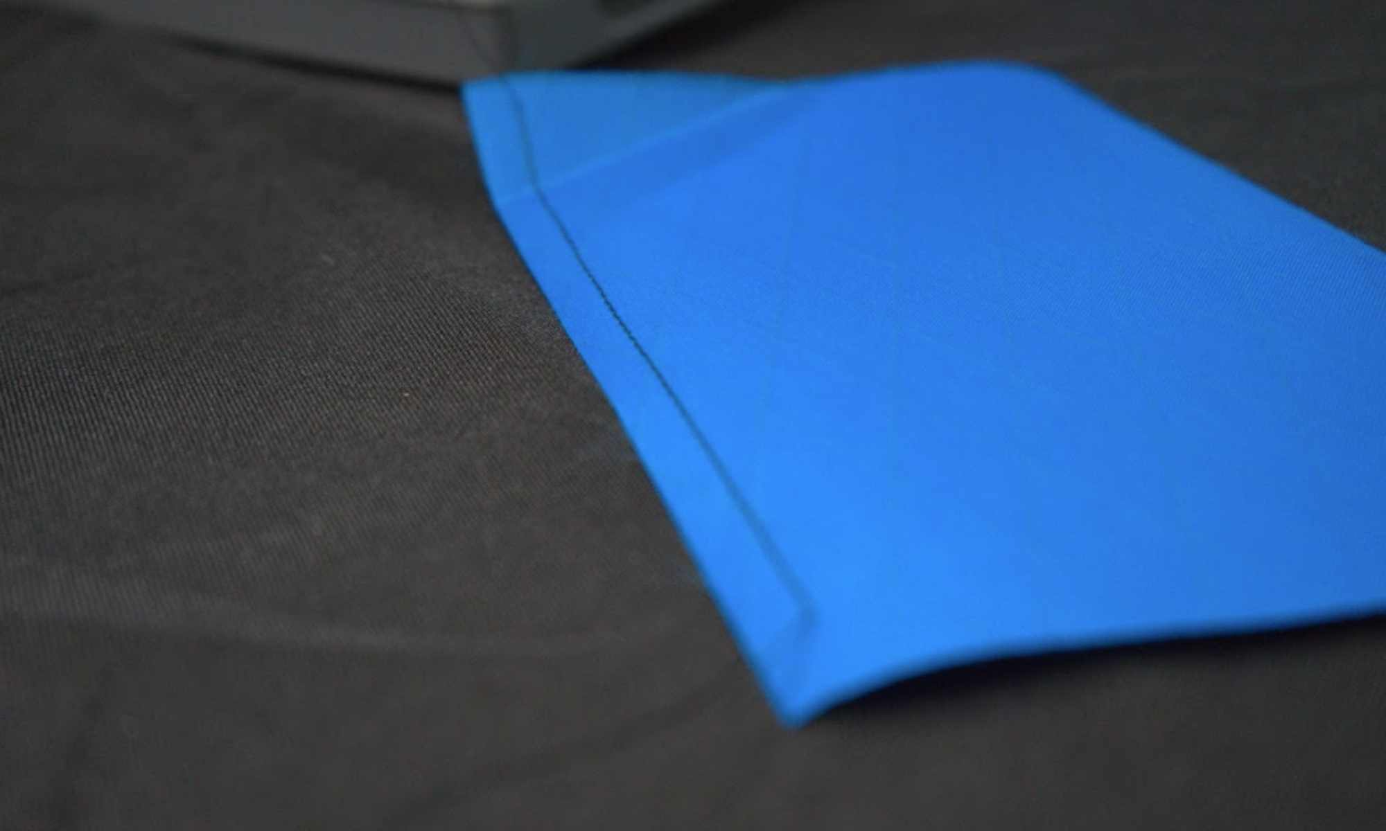 Definition: When you join two pieces of fabric together with a straight stitch. When stitching Woven fabrics like HyperD 300, the woven qualities of the fabric will heal or cover up the stitch hole, unlike laminate fabrics. Laminate fabrics such as non-woven fabrics like Dyneema Composite Fabric, will not self-heal after it is stitched therefore you want to use a longer stitch length to have a lower number of stitches per inch, approximately 4-8.