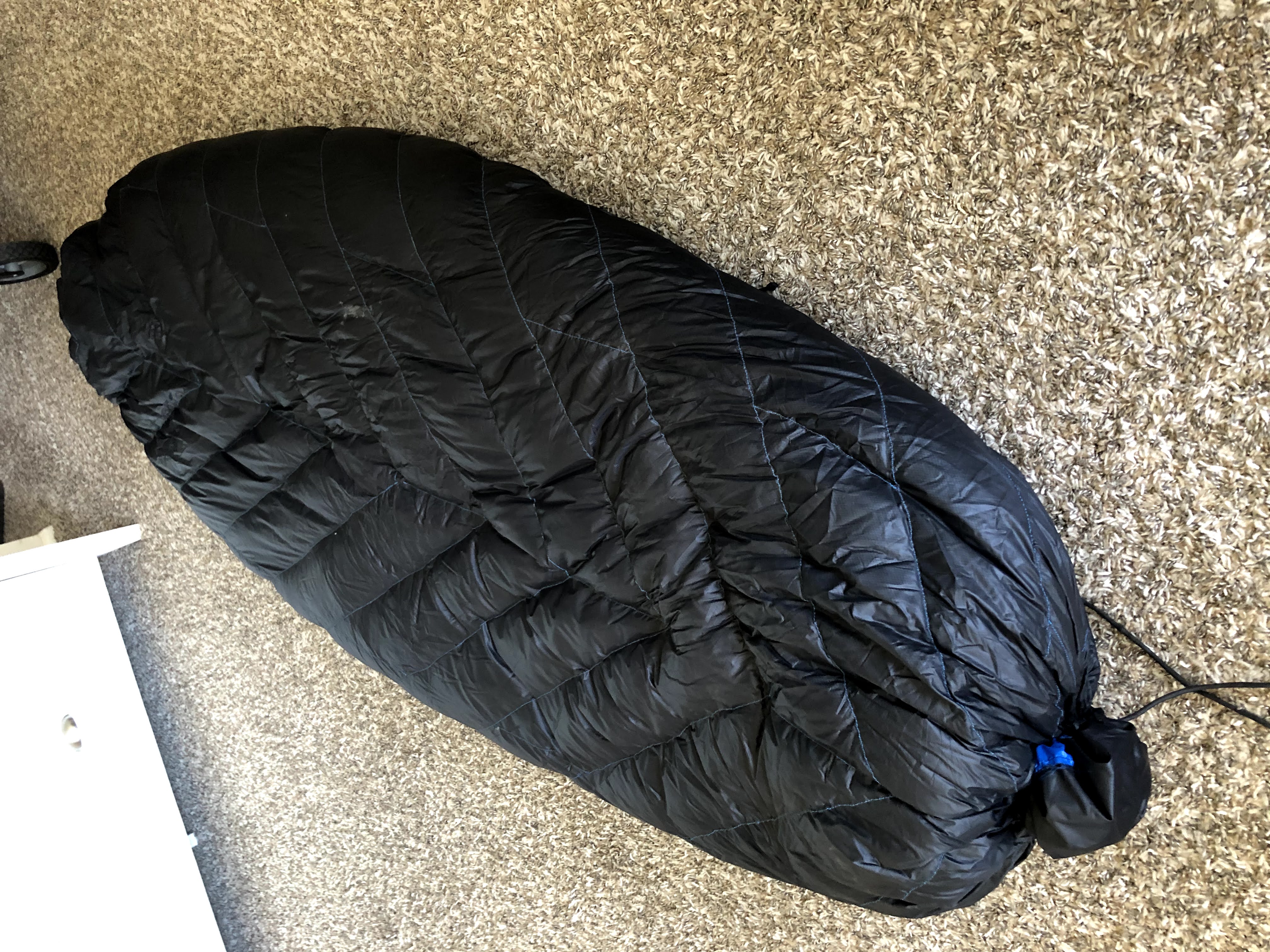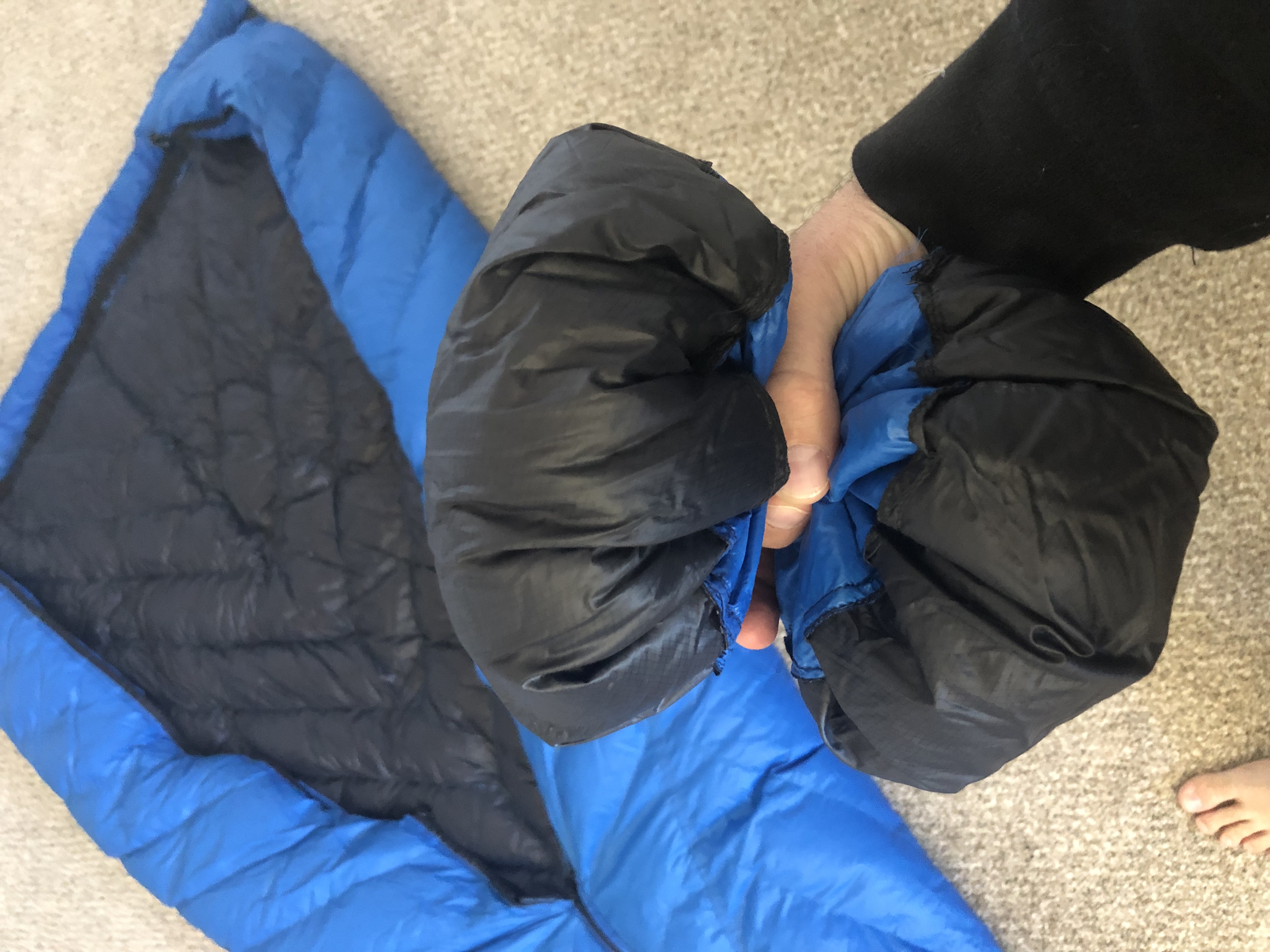 - a foot plug that solves the drawstring footbox problem perfectly (no idea why nobody has done this before). This allows the quilt to wrap around a hammock completely at its size and seal the foot gap with the plug, meaning there is no need for both top and bottom quilt.