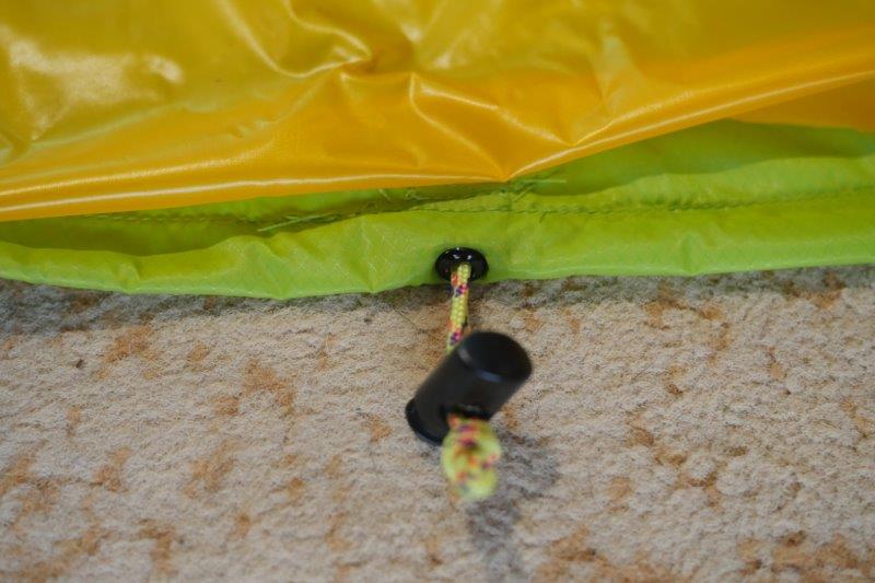 Channels for the drawstring were sewn on each end with eyelets in the middle for the drawcord. I used a piece of grosgrain behind the eyelets to support them. I sewed the shell together first inserting the zips and grosgrain as I went for the snaps. The climashield Apex was clipped to the shell with binder clips all around before sewing which helped to keep it in place. After sewing the shell was turned right side out. 2 layers of Climashield Apex was used to eliminate cold spots. This should give hopefully about 30F performance.