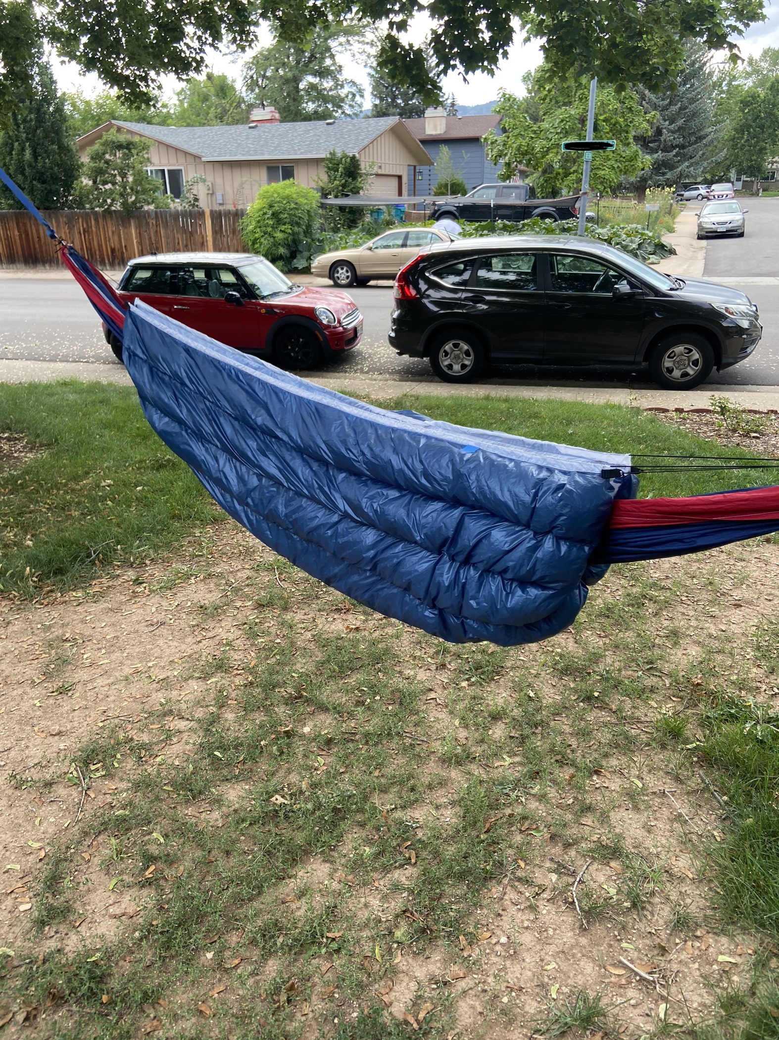 This is my first DIY project! I have never sewn before nor have I ever though about doing something like this myself so if you're worried about it, just send it. It allowed for some significant savings and it honestly turned out great! I'm super excited to try it out when it starts getting cooler here. I can take out the suspension to make a regular quilt as well. Weighs in at 15 oz with the suspension so I'm stoked!