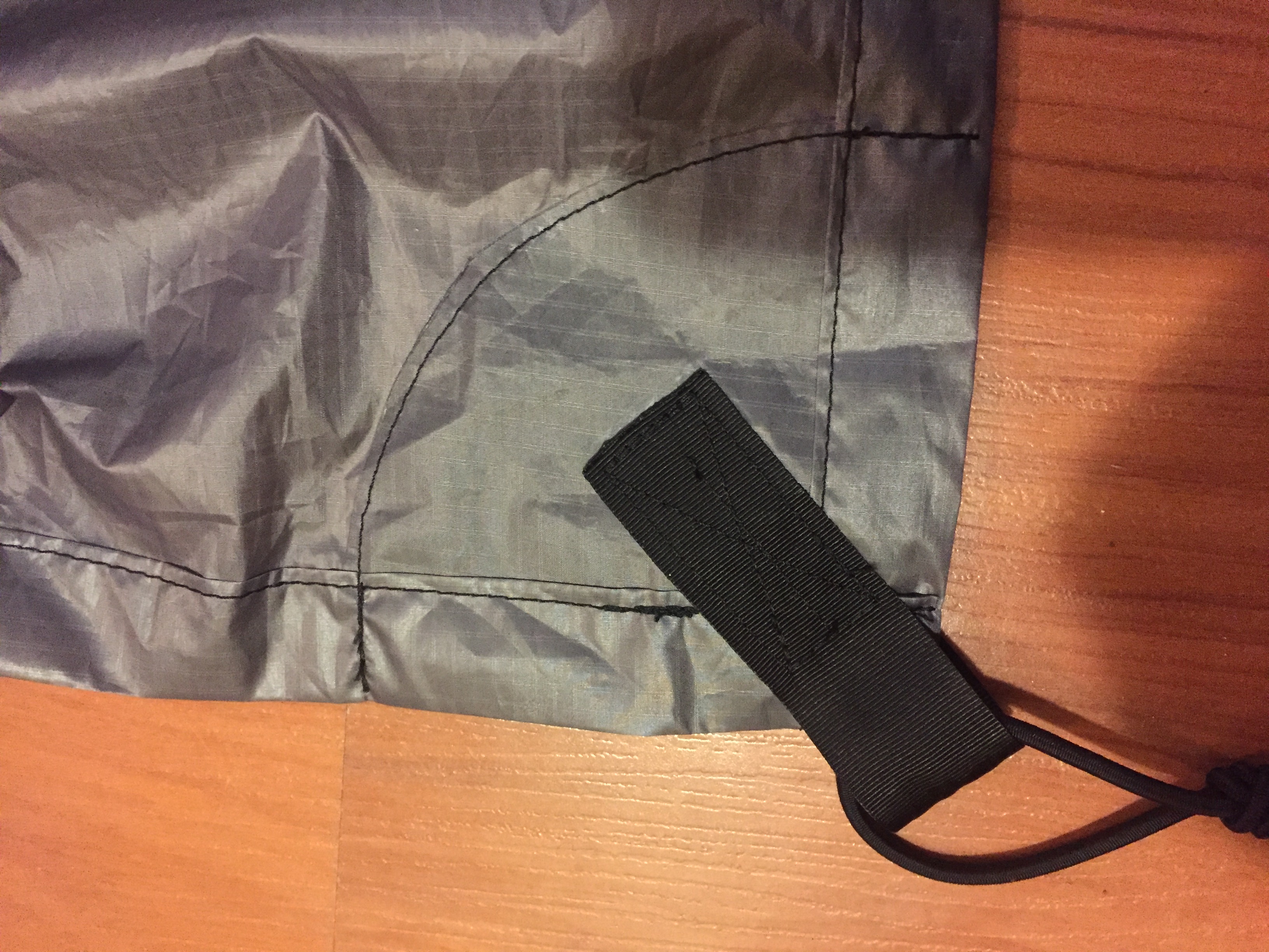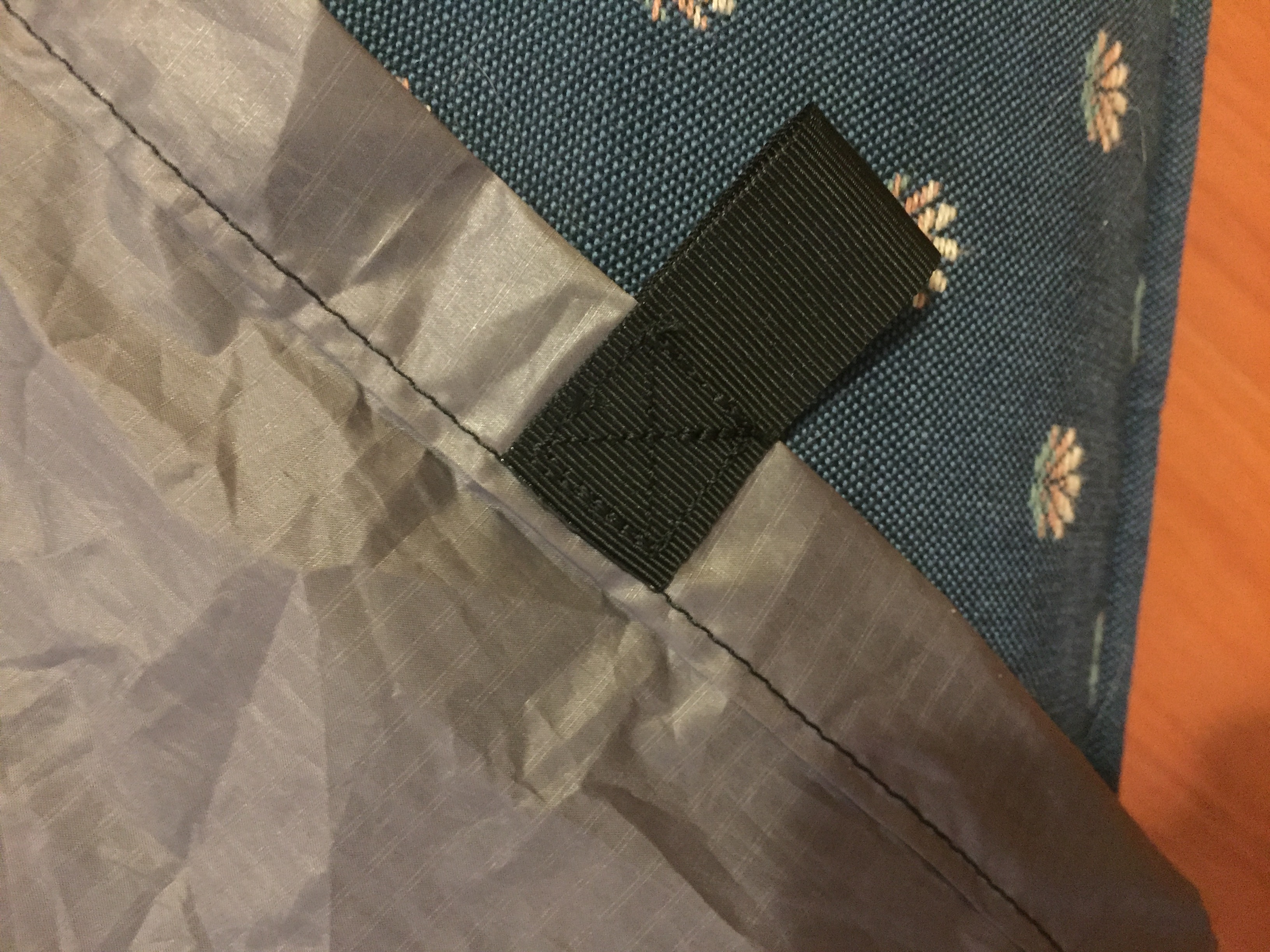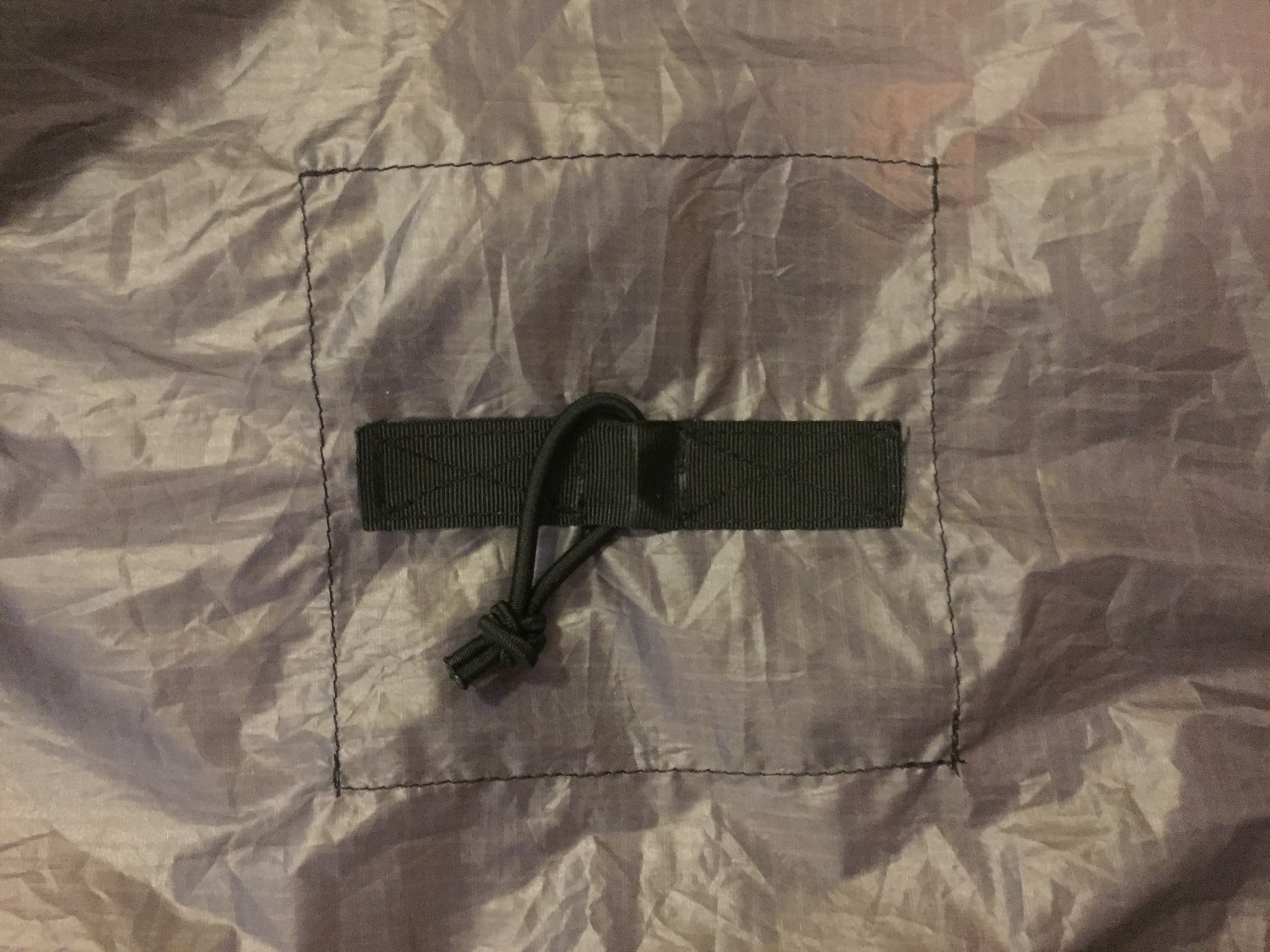 My project is a 6x9 tarp with grosgrain tie outs. I decided on 1” corner tie outs to spread the load more than narrower gross grain. I left the tie outs flat sewn to put shock cord through. The ridgeline tie outs are on large reinforcement patches and longer for strength. The reinforcing patches were hot cut and hopefully won’t fray. There are two centre pullouts stitched on reinforcing patches.