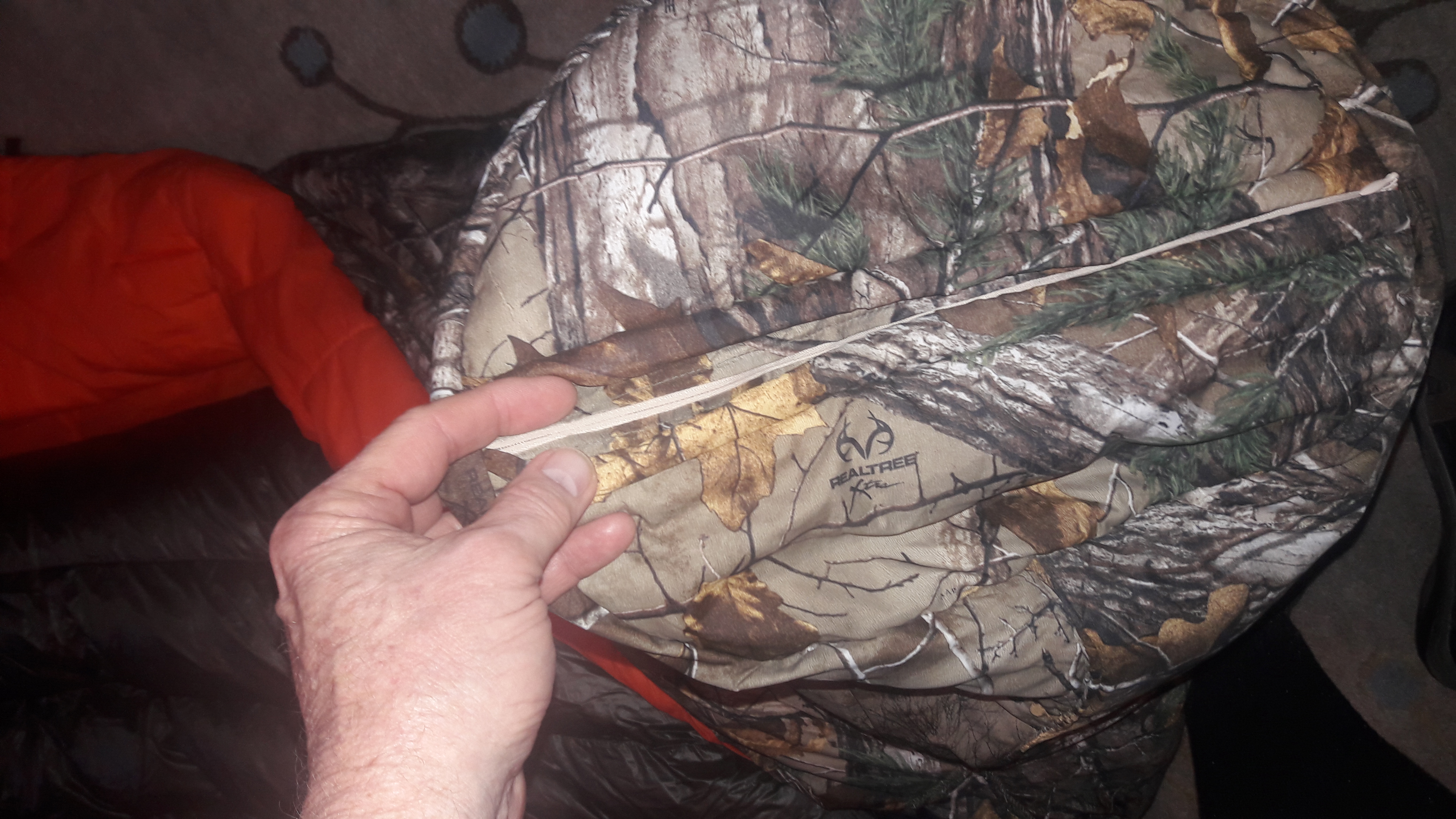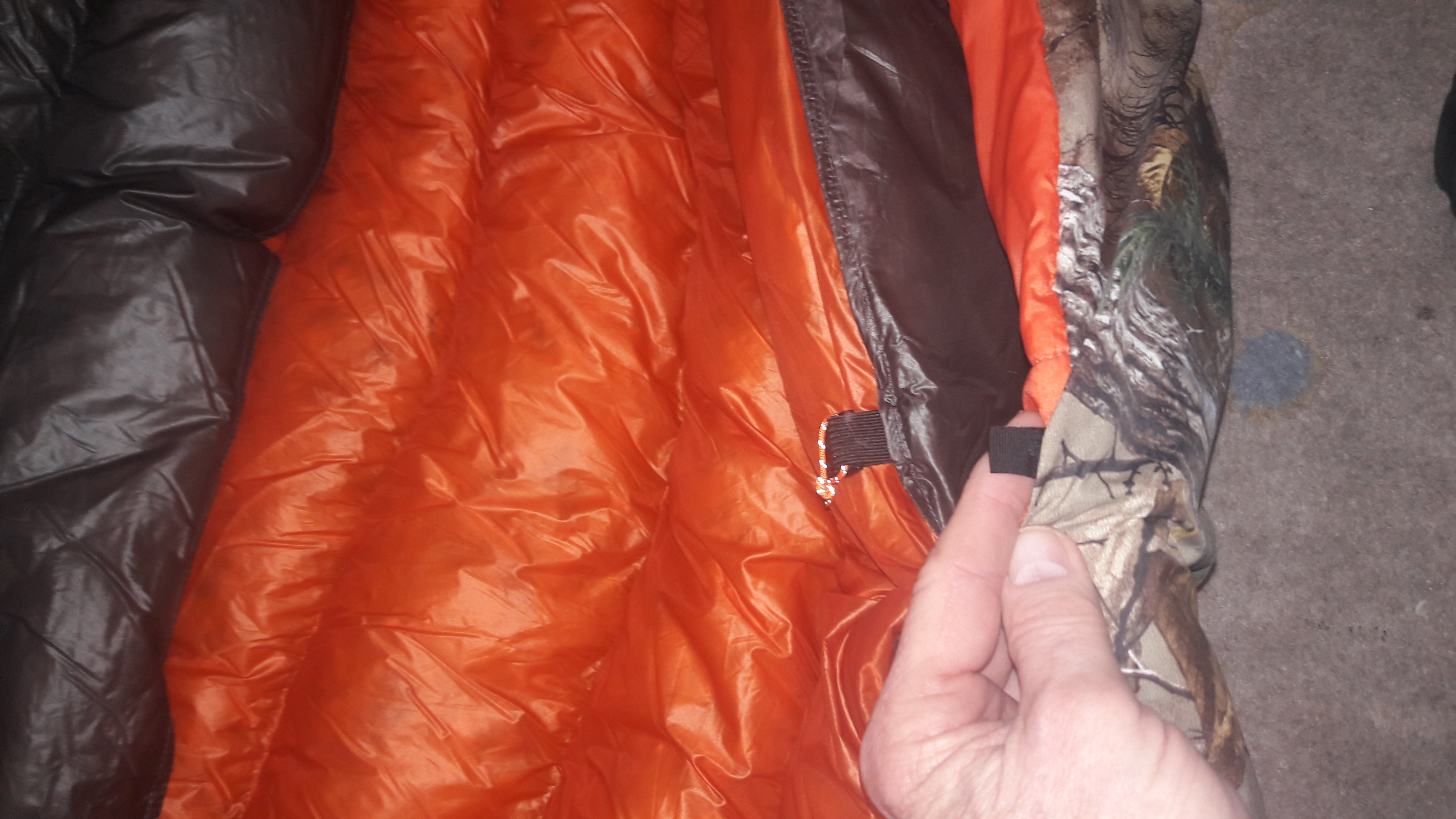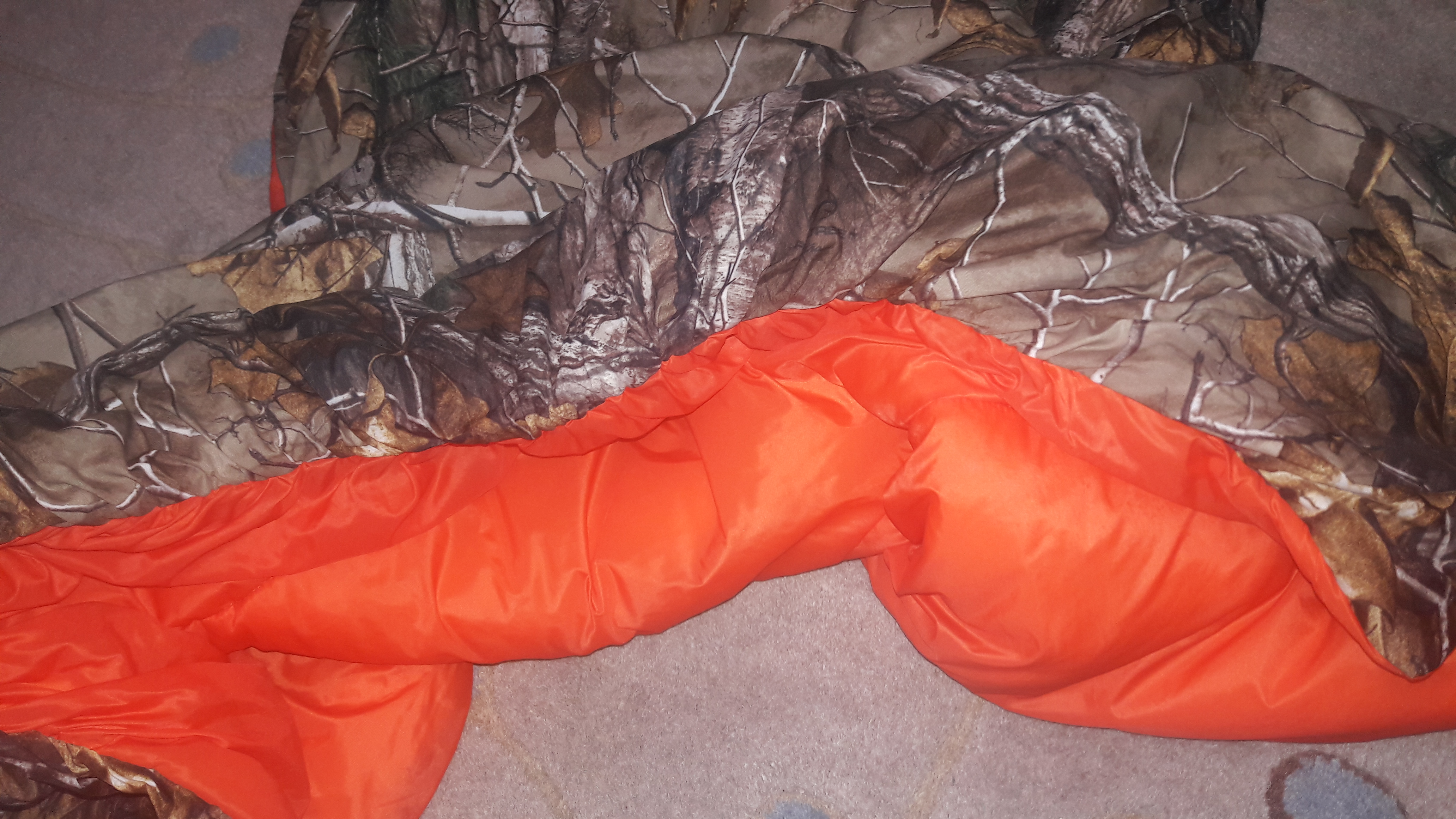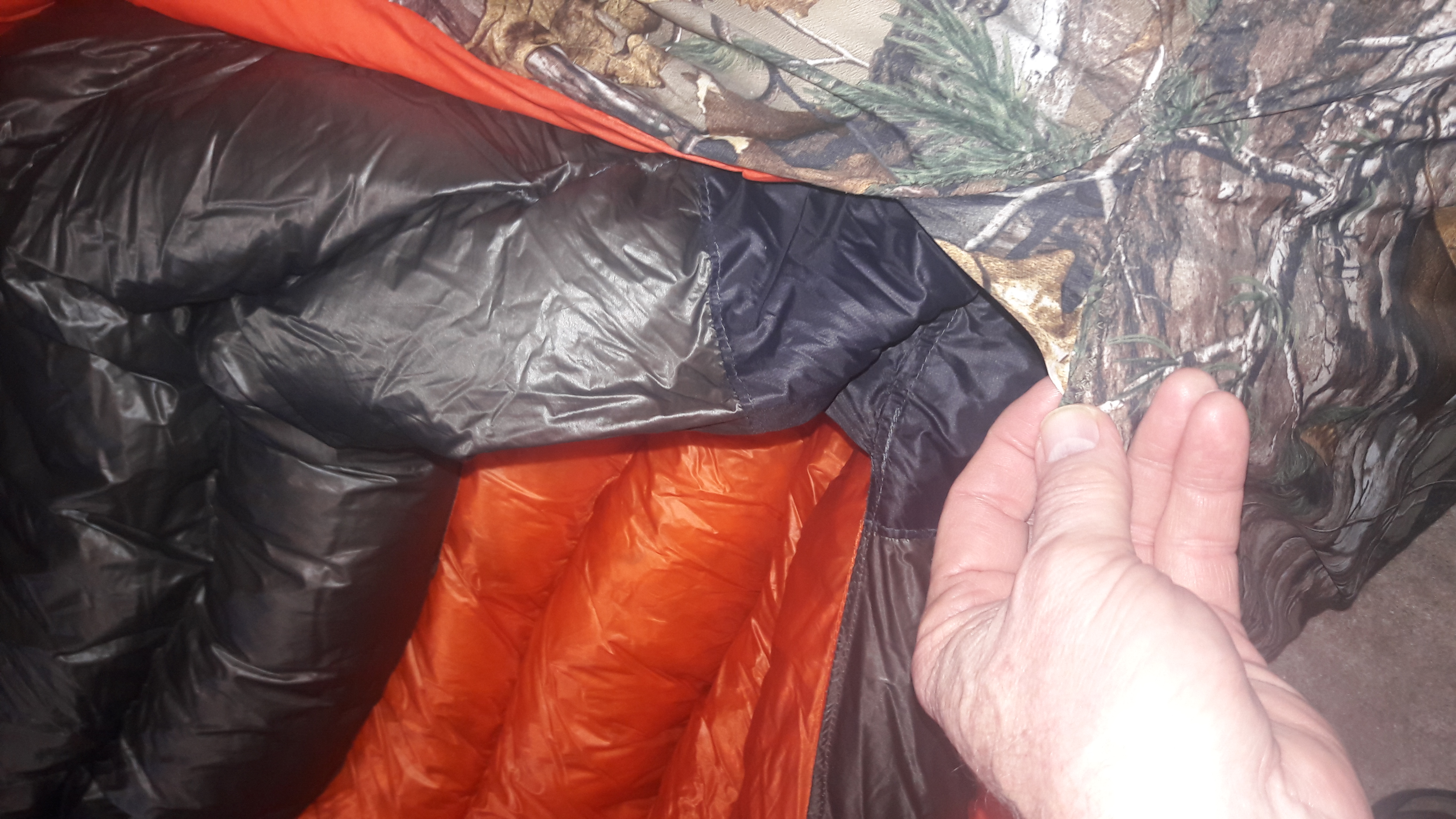 I took a somewhat unorthodox approach to making this quilt. Having grown up in a drapery and upholstery shop I have maintained good sewing skills and did not mind making a more complex quilt than I might otherwise have. I cannot stand drawstrings bottoms on quilts, so I chose to put a zipper in the foot of this quilt to allow ventilation and this has proven to be a superb idea. It extends the quilts upper comfort range from about 70f up to 73f and that is really  a key range of temps. I sleep under this quilt 365 days a year, indoors and out, so comfort and flexibility is paramount.  I also chose to quilt the APEX to the inner layer of the quilt. This was done to keep the Blaze orange inner layer from tangling in my twitchy feet and gangling legs at night. I left the outer layer of fabric unquilted to avoid mist or dew seeping through and to further avoid cold spots, I used two layers of APEX in the quilt. The inner most layer is quilted as noted above and the outer layer above it is not quilted but is only sewn around the edges. This arrangement has also proven to be an excellent design. I made the APEX quilt just lightly larger than the Enigma so that it would both wrap around the side of the Enigma and fasten to it via the Grosgrain tabs that I sewed into the quilt. Additionally, I made the APEX quilt just slightly longer than the Enigma so that it would provide adequate coverage for my shoulders and would cover my neck just the same as the Enigma. I used the waistband elastic to create a mildly gathered neck on both quilts. (I just took the top seam out of the enigma and sewed a gathering stitch with the elastic exactly as I did with the APEX quilt.) One other thing to note that I believe is important. In order to avoid a lump under my knees I made sure that the expansion/reinforcing joint at the footbox of the APEX was about 2 inches further down my legs than the Enigma. My wife insists that the fable of the 'Princess and the Pea' was written about me. Ha. What does she know, I've seen her sleep on the deck of a rolling sailboat in the middle of a storm on the ocean...seriously, some thing is wrong with her. :) Which brings me to my final point. The combination of these materials is SUPERBLY comfortable. The 1.1 ripstop un-calendered nylon inner liner is like a wonderful satin sheet, very snugly and not too slick. Perfect for this application. I sure hope the Realtree Xtra is available for some time as it is the cat's meow for an outer fabric. Soft as heck, sturdy and water repellent enough to fend off heavy dew and mist while not being crackley like many DWR fabrics. It is perfect for an outer quilt. This quilt packs down into my pack extremely well. At 27 oz it is the perfect companion for the oversize, wide/long Enigma 20 quilt which weighs in at 25.5 oz. For a combined weight of 52.5 oz or 3.28lbs I have a sleep system that is very comfortable from 73f down to 10f. I've tested it and it is fantastic. On cold nights, I sleep in only a light or mid weight long underwear and a long sleeve capilene top. If you have not yet ventured into the world of layering your quilts, I say try it, you just might like it! Ohh yeah, please don't tell my wife I said something is wrong with her. I'll end up walking with a limp for months.