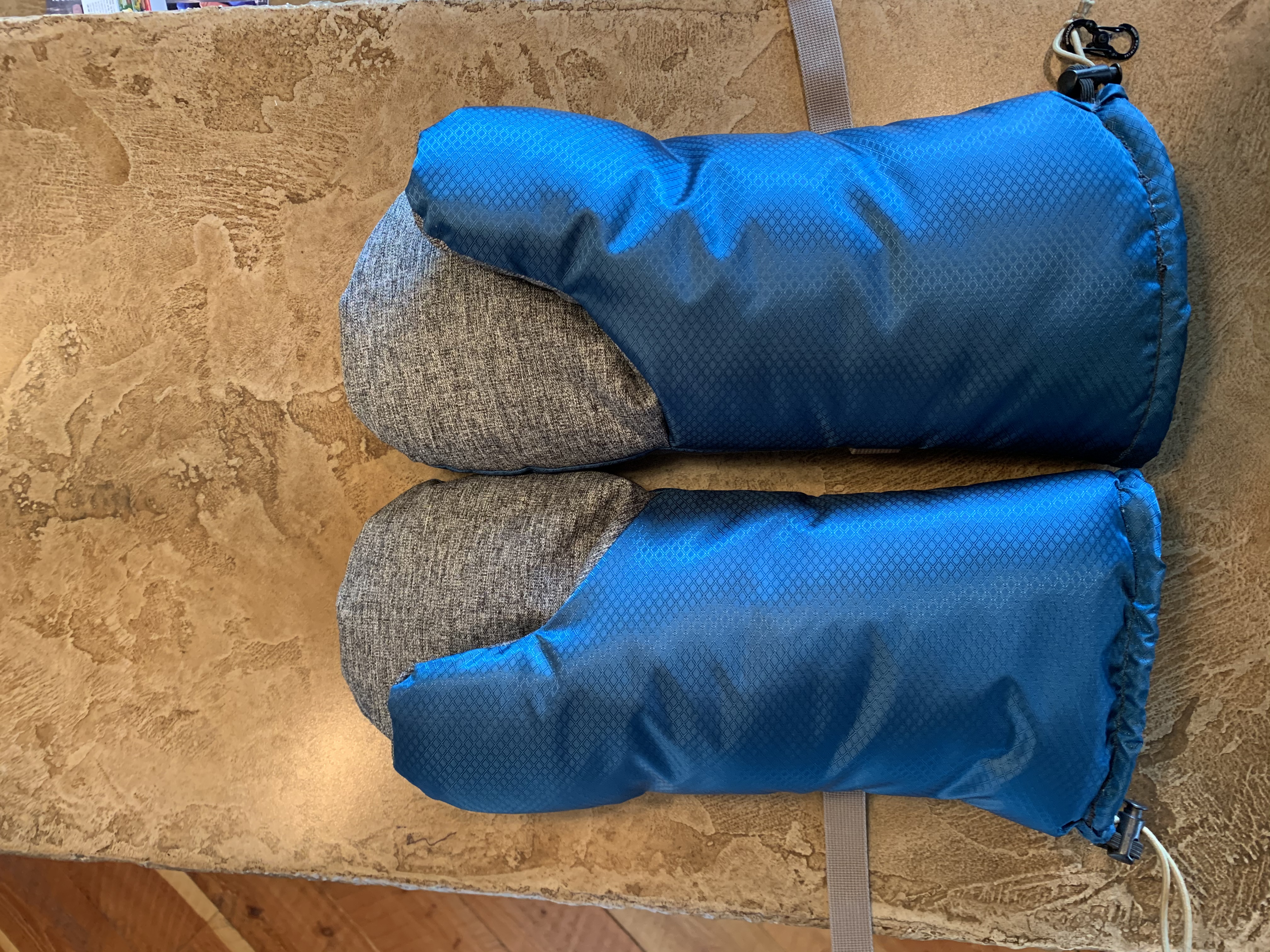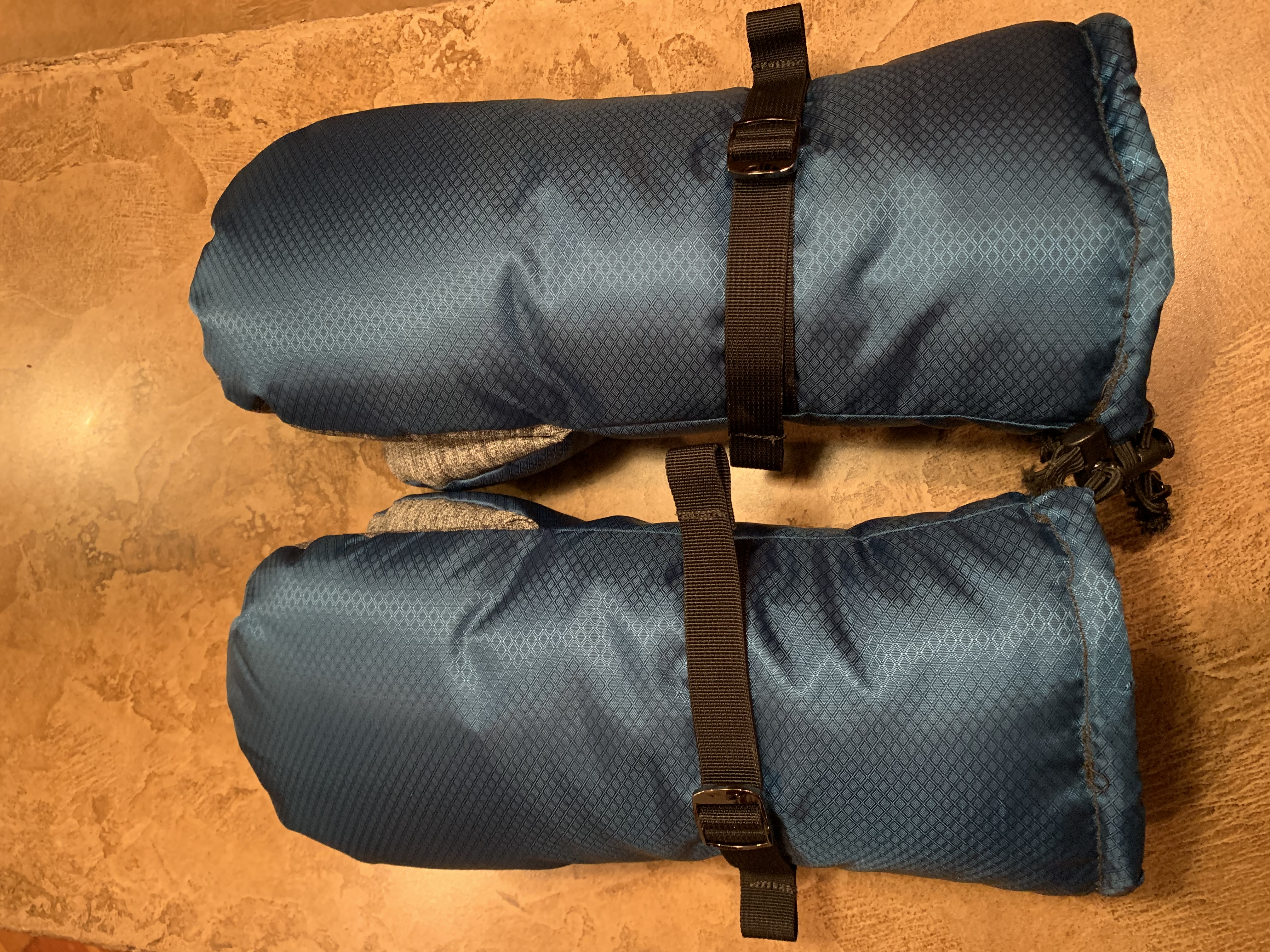 Step 1:I began by using scrap fabric to play with getting the outer mitten size big enough to have room for my down, and both the down proof layer and fleece layer. After I had my pattern, I combined the Dyneema with the HyperD 300 to create the enormous outer shell, being careful to cut out and sew fabrics with the correct side inward to turn inside out to hide seams. During this phase I also laid in the wrist straps and buckles being careful to have them turned the correct direction.