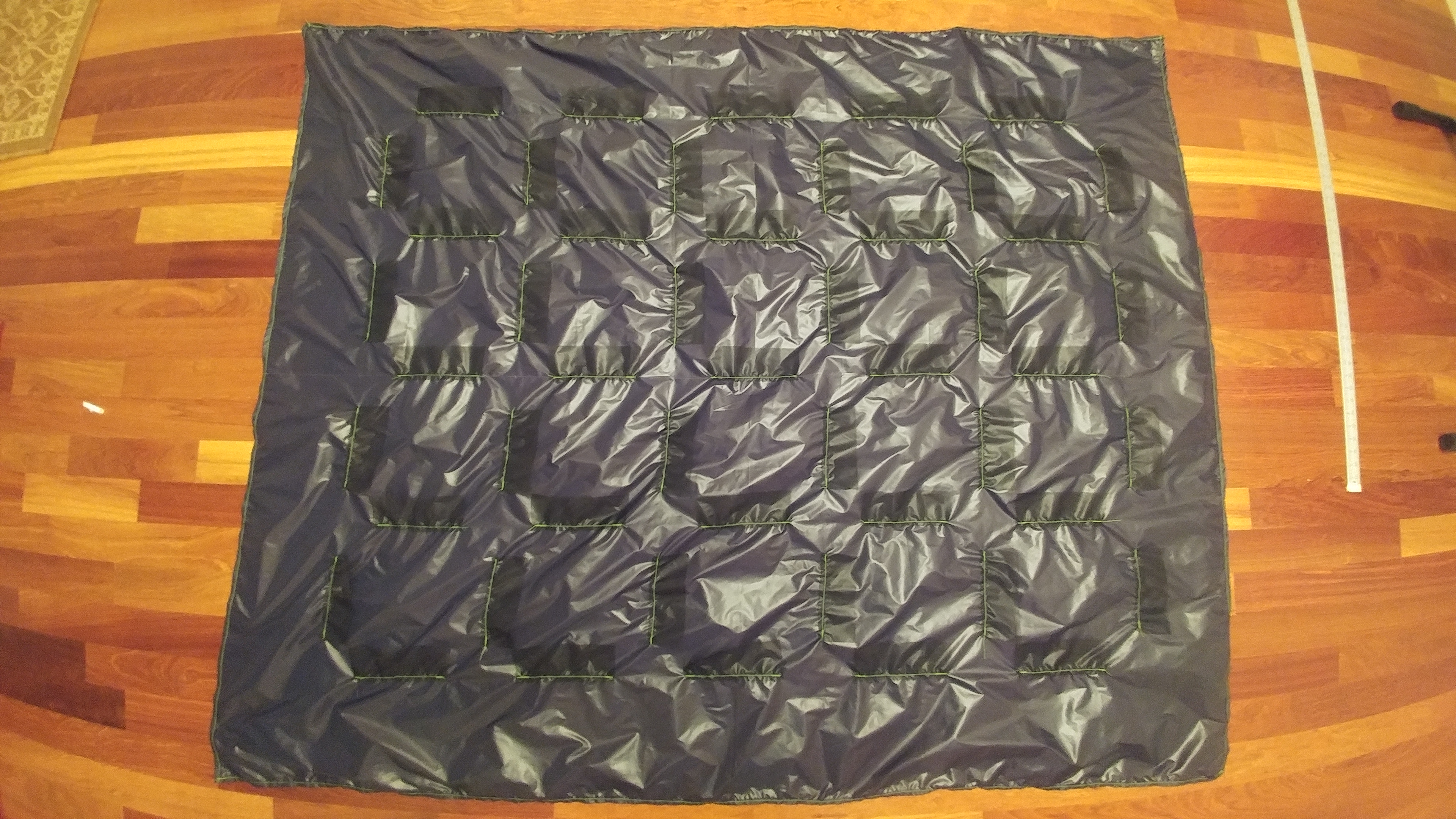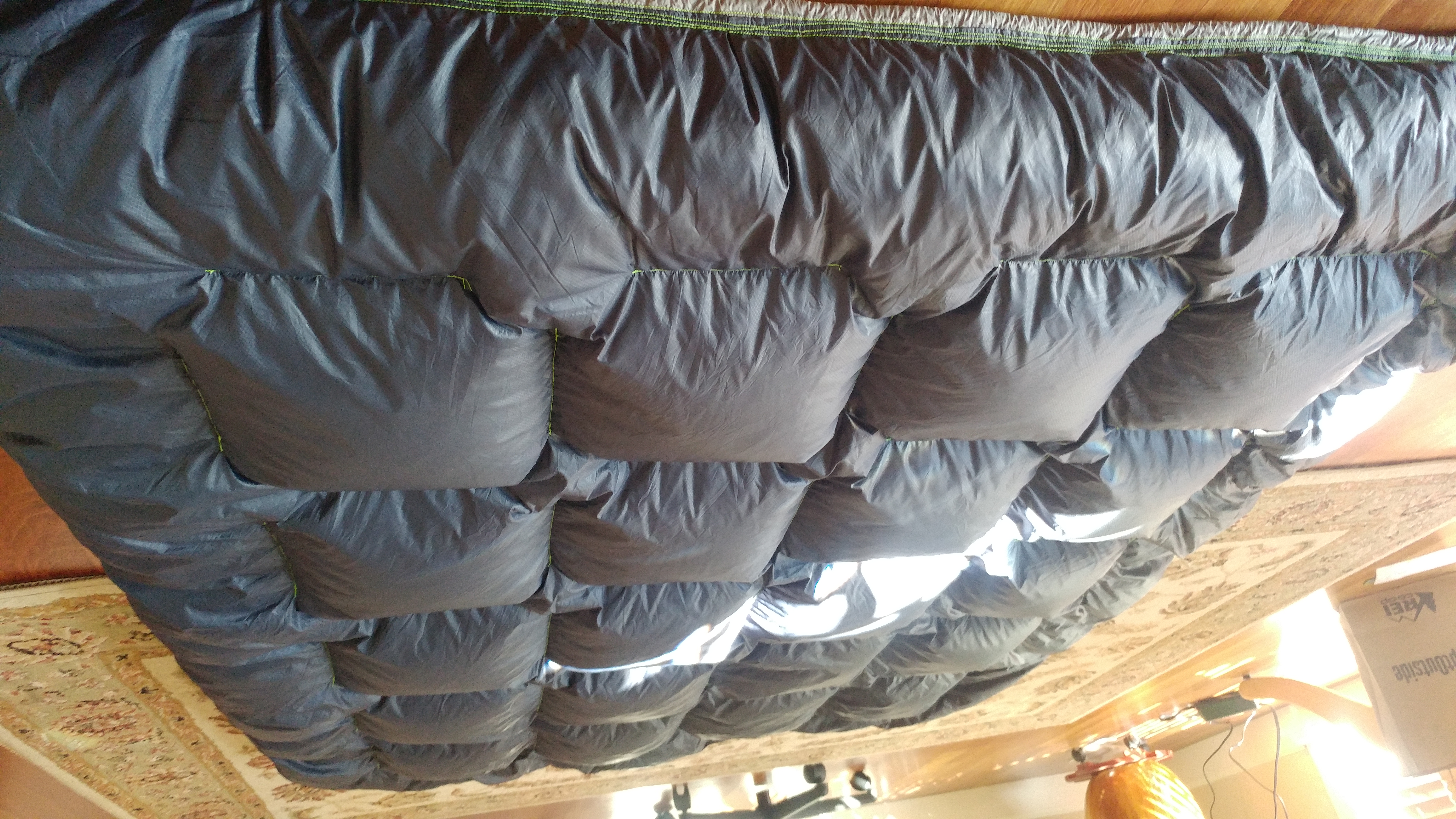 I hope this can be helpful to anyone looking to make a similar project. My first sewing project was to convert a couple of Costco Down Quilts into an underquilt. It worked fine, but then decided I wanted to use the best materials and make something more lightweight and suitable for winter hammocking as well. I knew I needed some type of interior baffles to maintain a good amount of loft. I went with a Karo Step pattern because of the ease of stuffing the down, and the ability to shift it to portions needed most on the quilt.