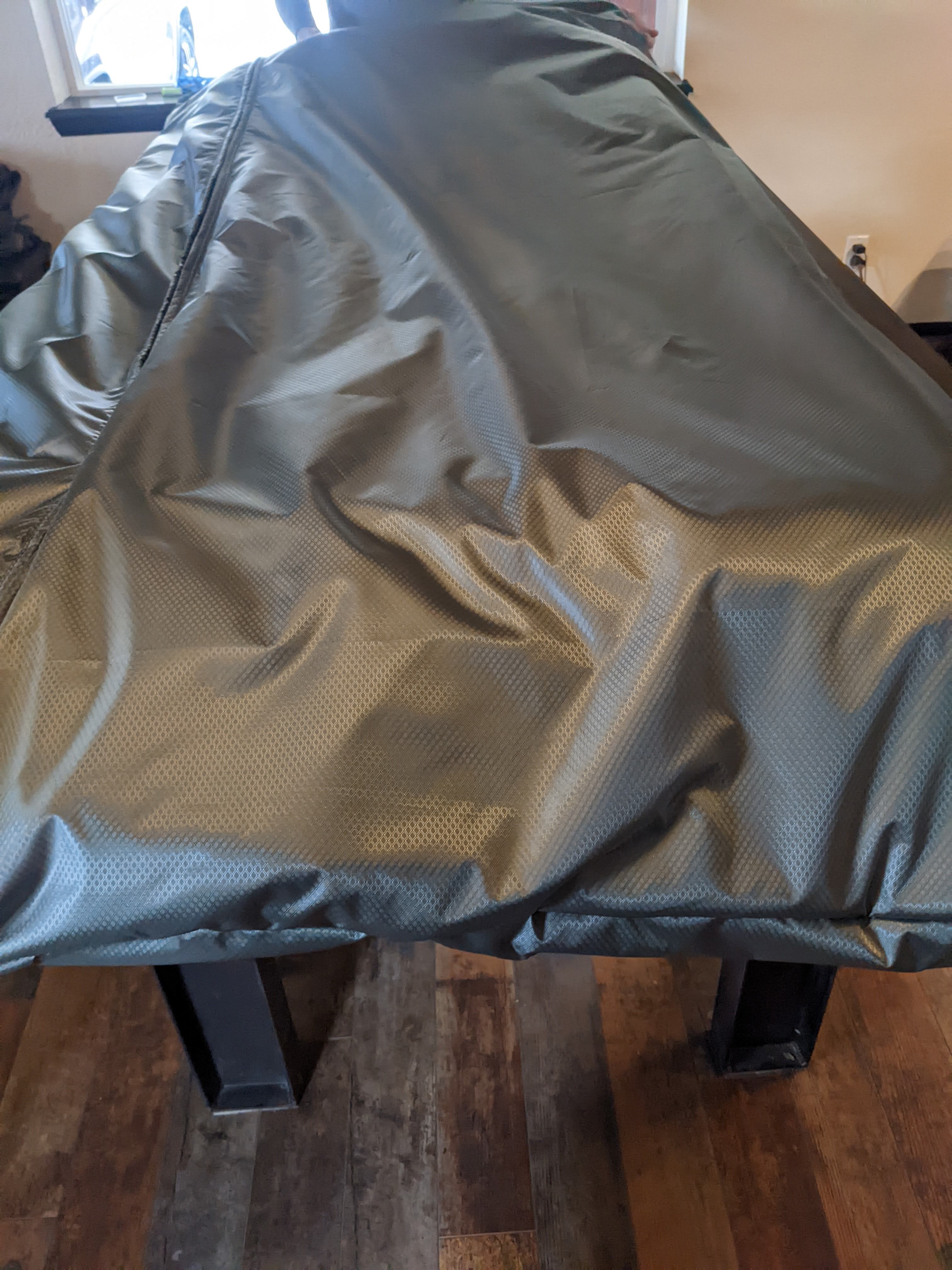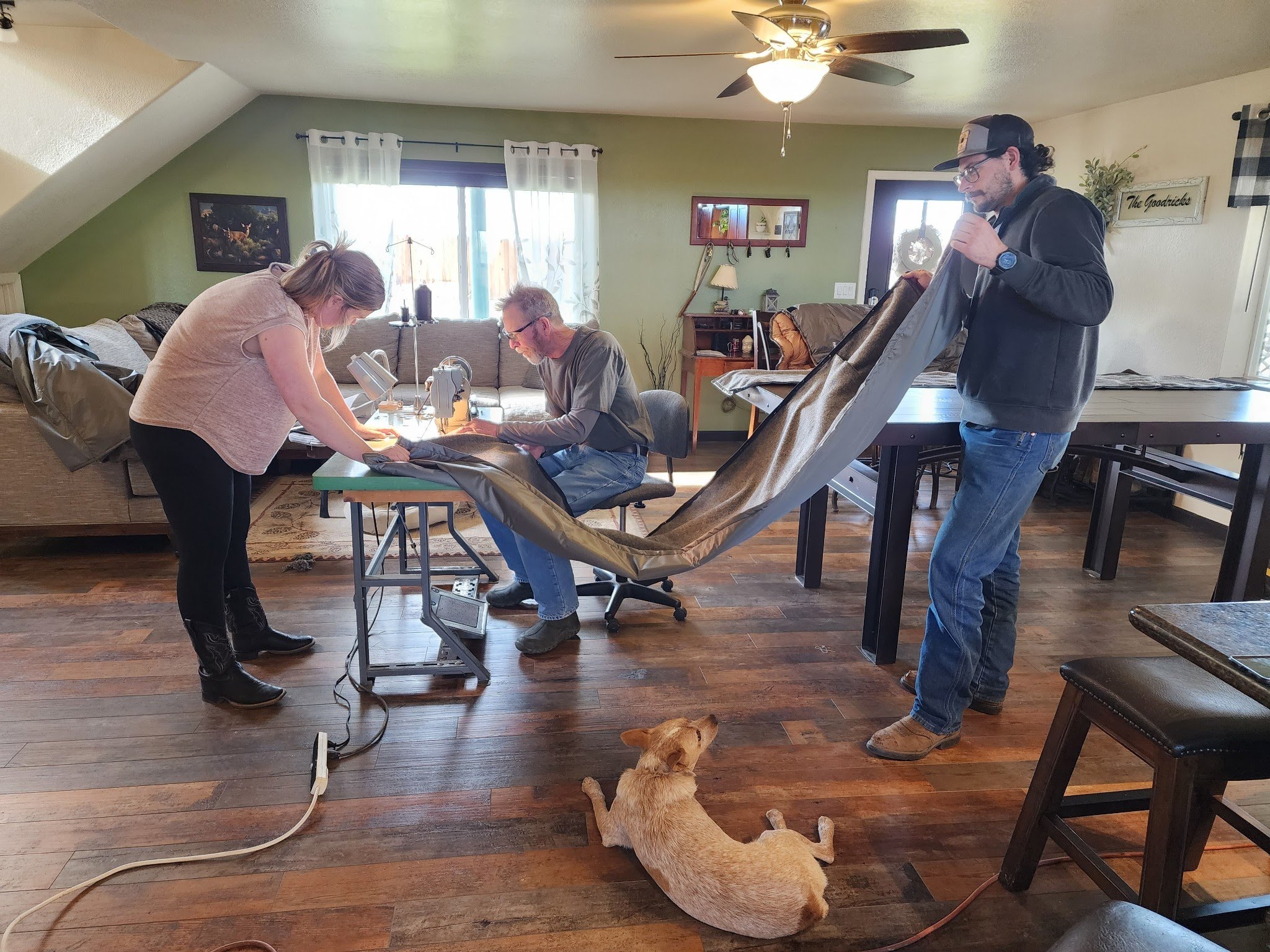 We found that with the wool we had to create bias tape with the HyperD 300 fabric around all the edges to keep the stretchy wool square so it didn’t walk and pucker.Â
