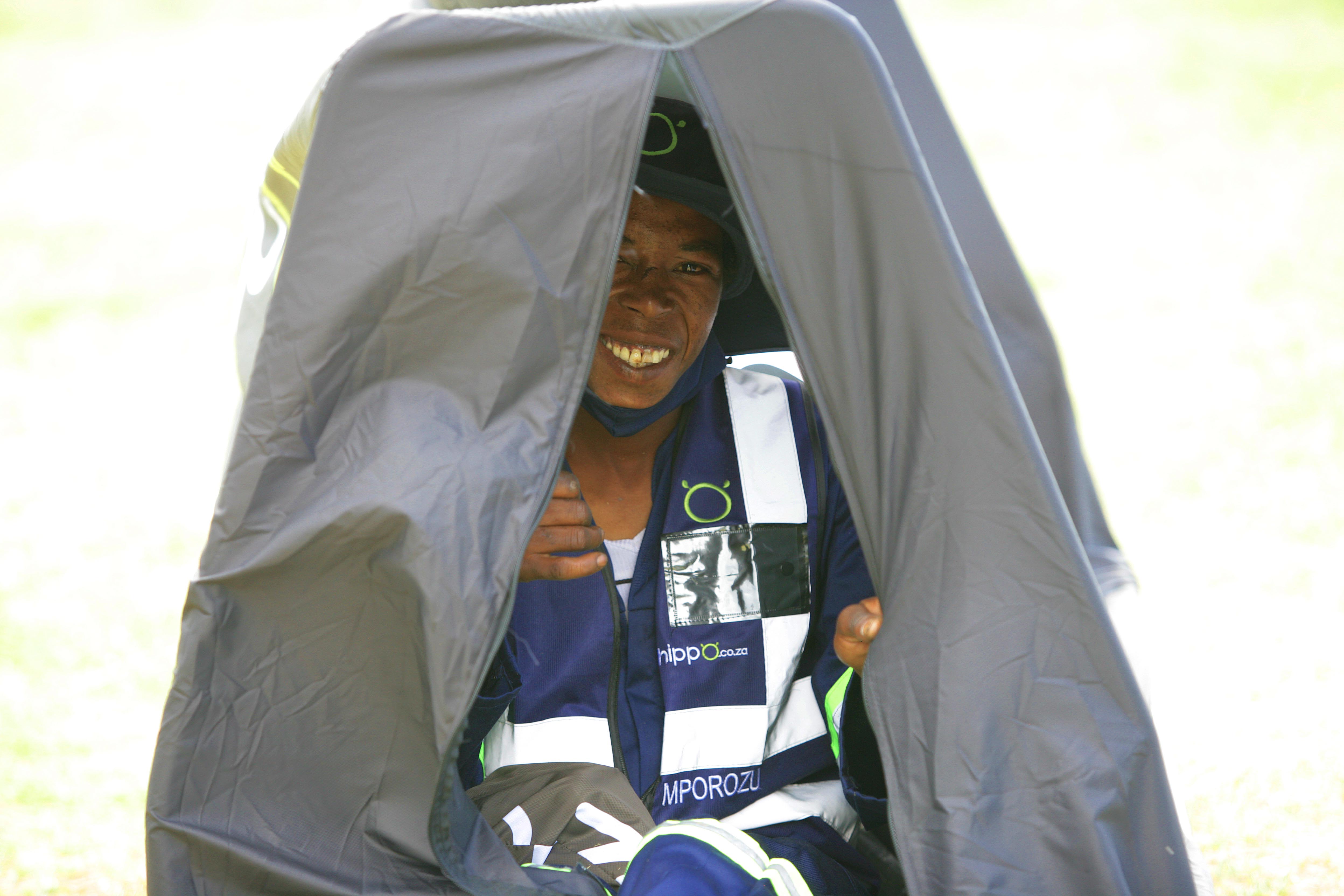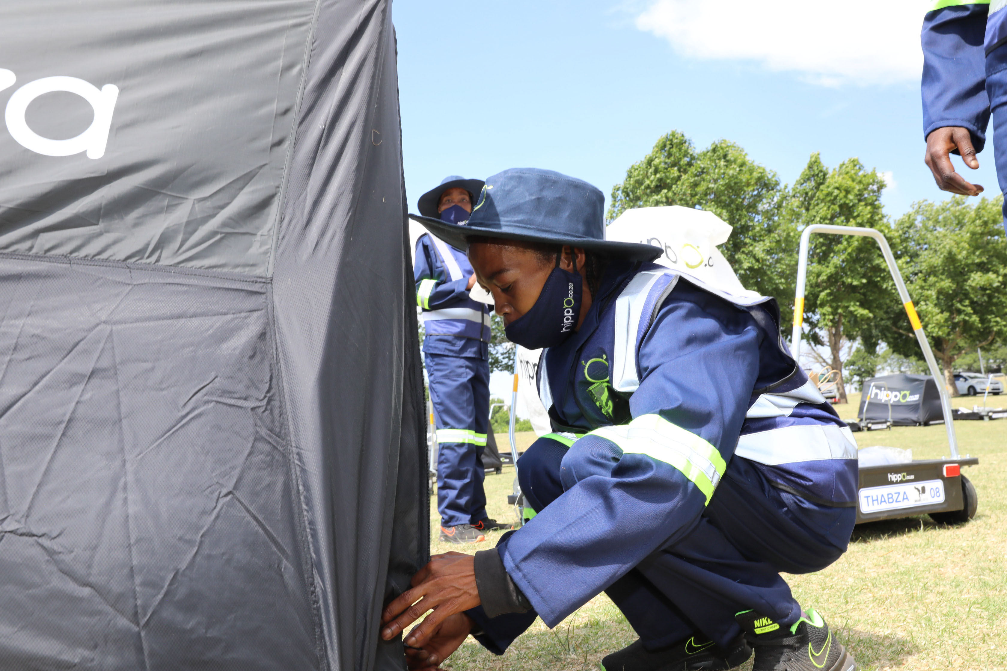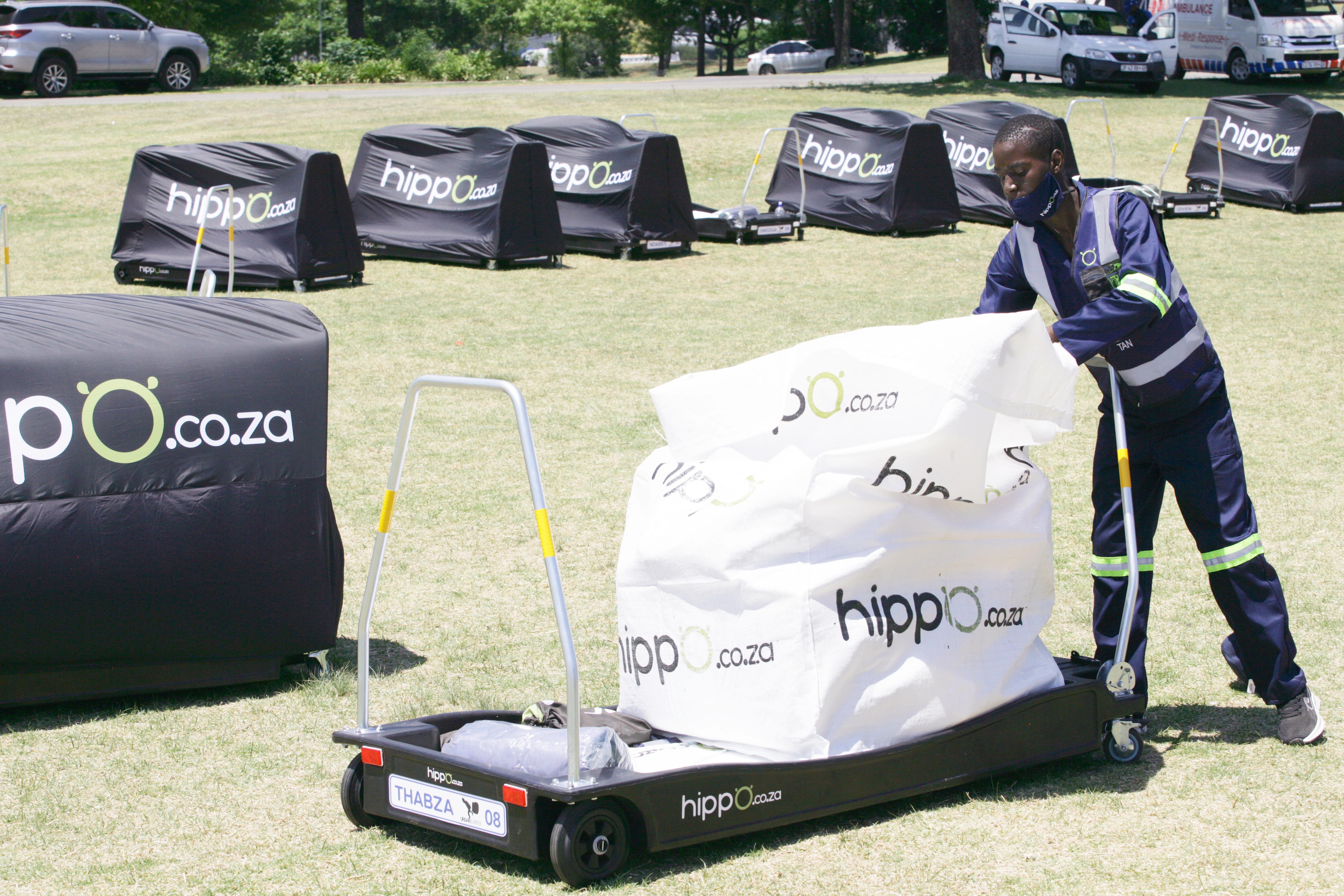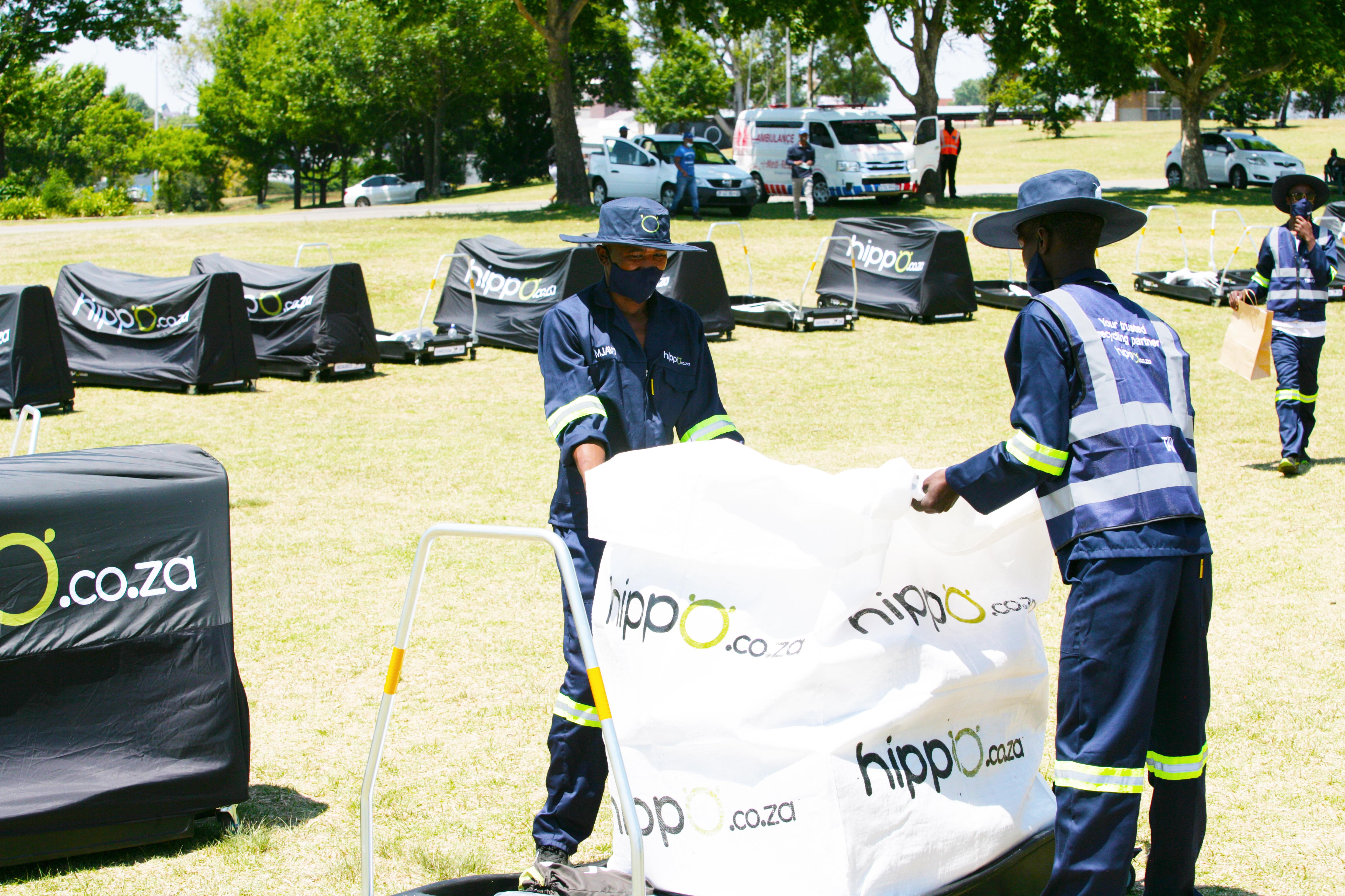 Informal waste reclaimers in South Africa. We provided them with collection trolleys to collect plastic waste. This trolley then becomes a shelter from rain or a temporary over night shelter. Most reclaimers are homeless so this trolley shelter is very welcomed by them.