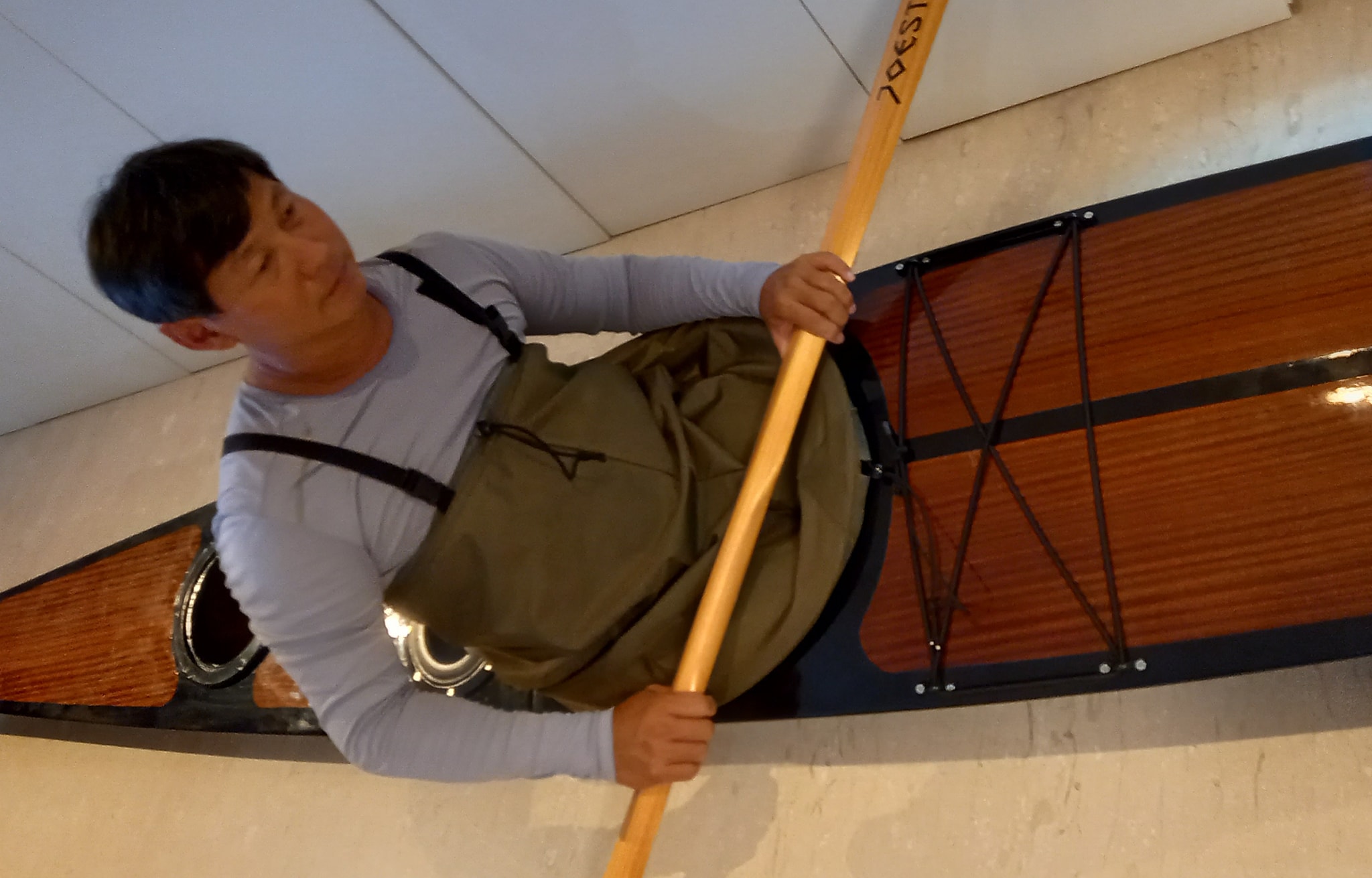 Greenland kayakers use a spray deck, AKA "Akuilisaq" to provide a waterproof seal between the cockpit opening and the kayaker's body to prevent the craft from being swamped. Since no commercial Akuilisaq can fit onto my homebuilt Greenland kayak, I have to tailor one based on the cockpit and my chest size.