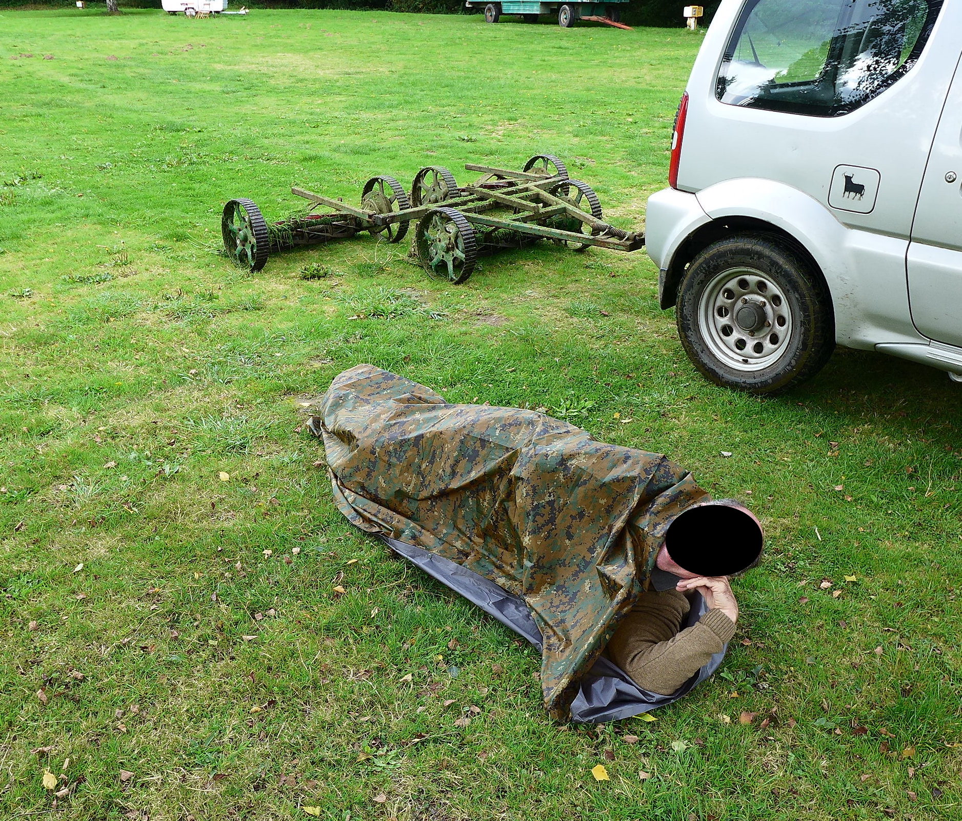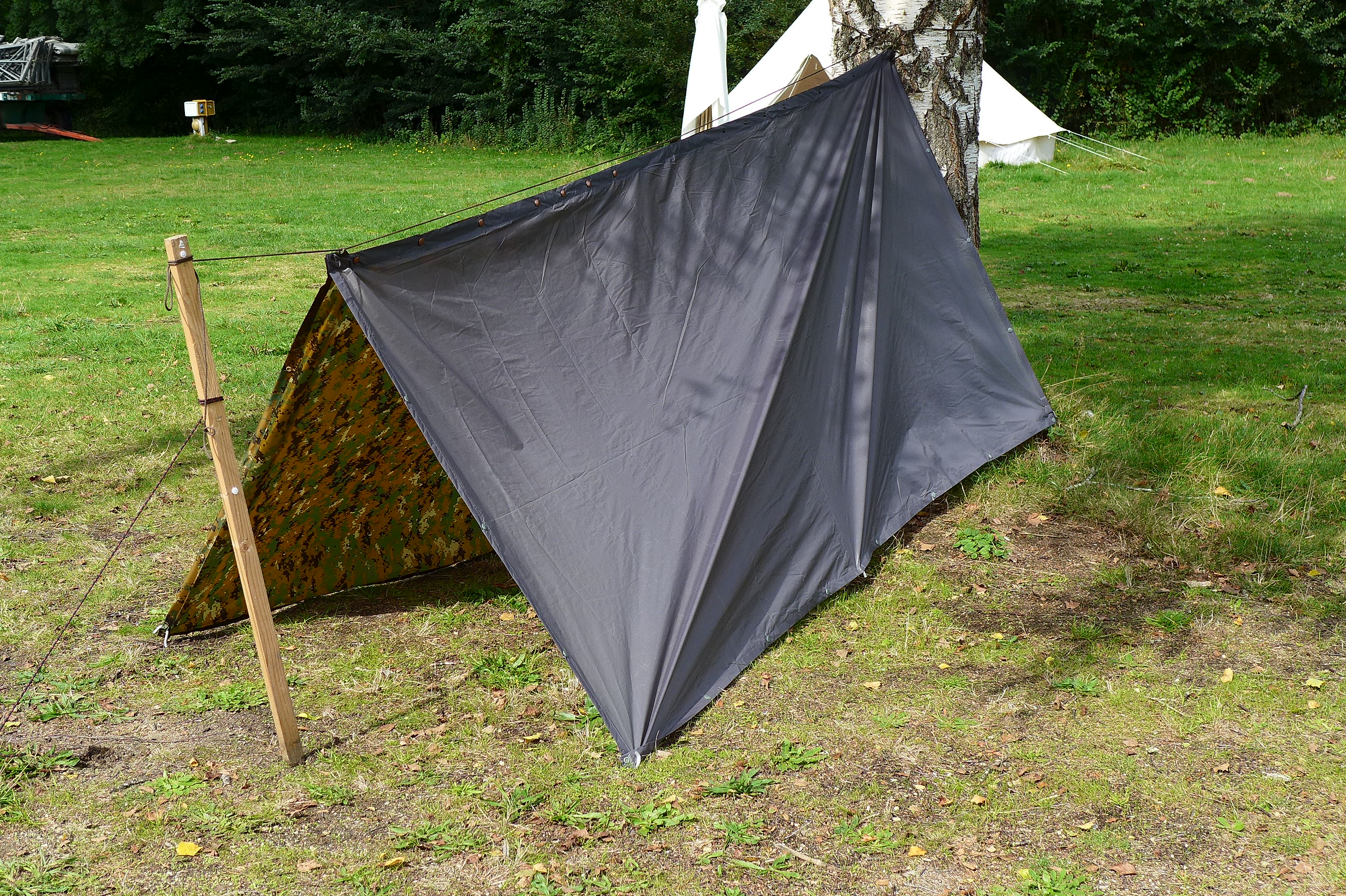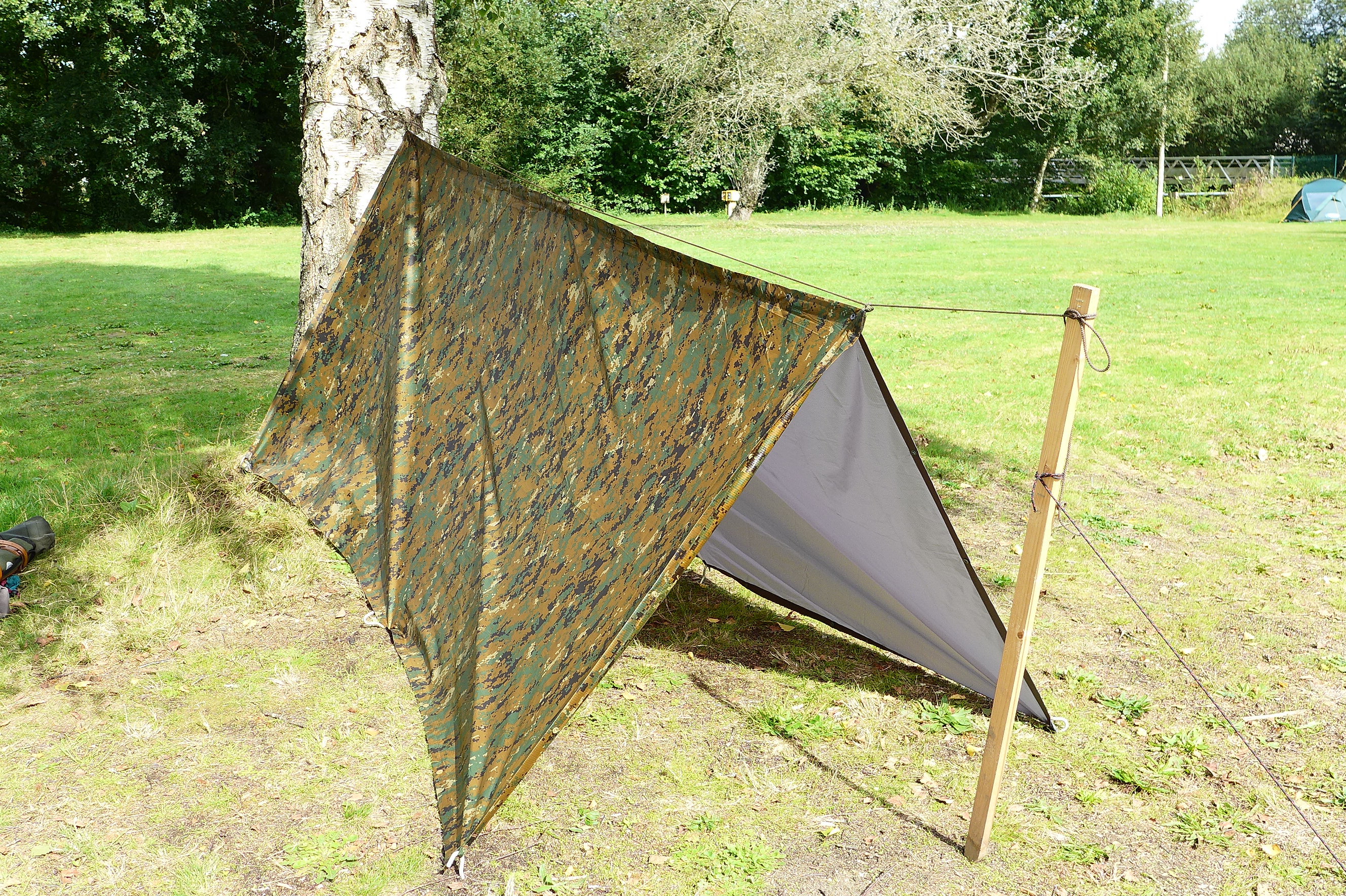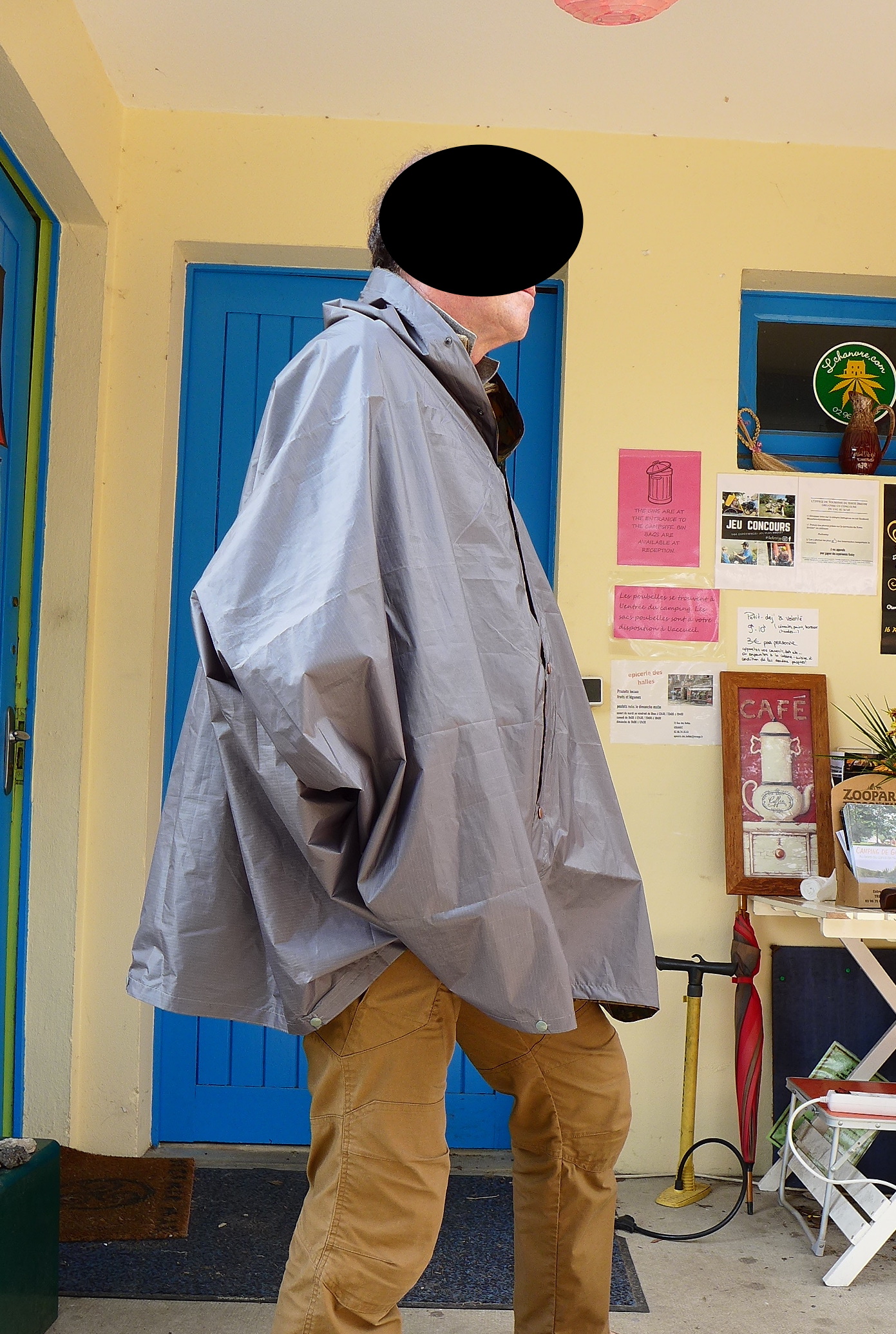 I used 15mm 'anorak snaps' for the cape front / ridge line edge and 1/2" plastic Kam snaps for the other three edges. If using two colours, as here, the Kam snaps need to be 'mixed and matched' (male and female) to use up an even number of each colour snaps, 3 at each end, 2 at the corners, 6 on the long edge.