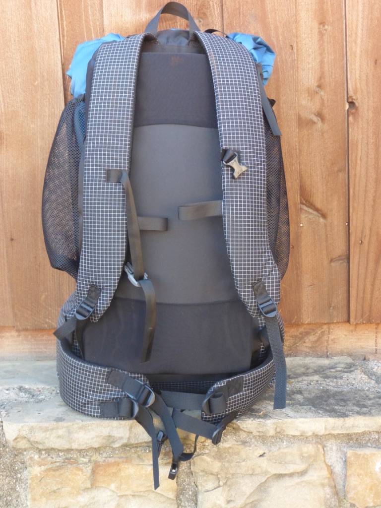 various side release buckles, ladder lock, webbing and cord for compression and strap