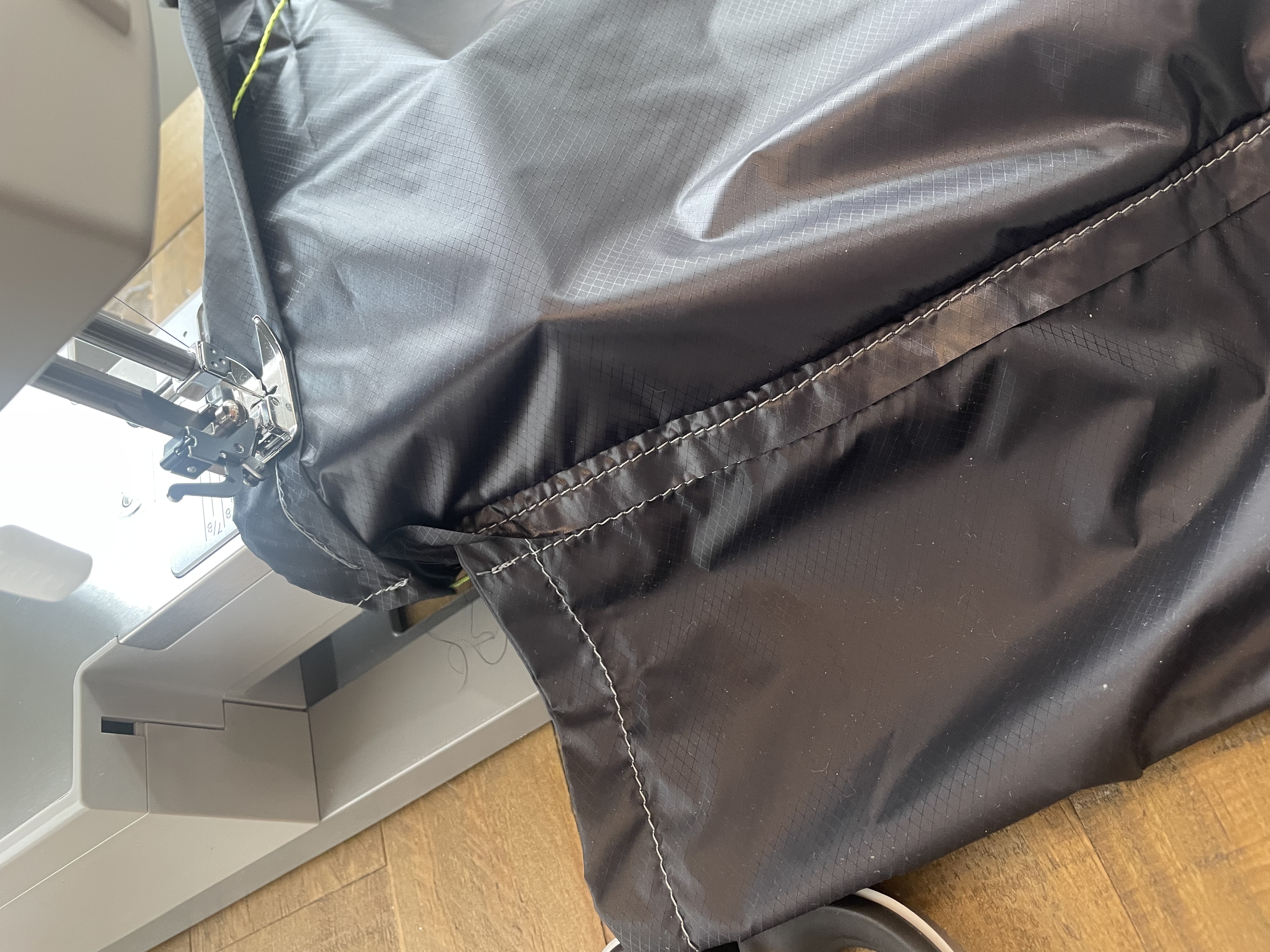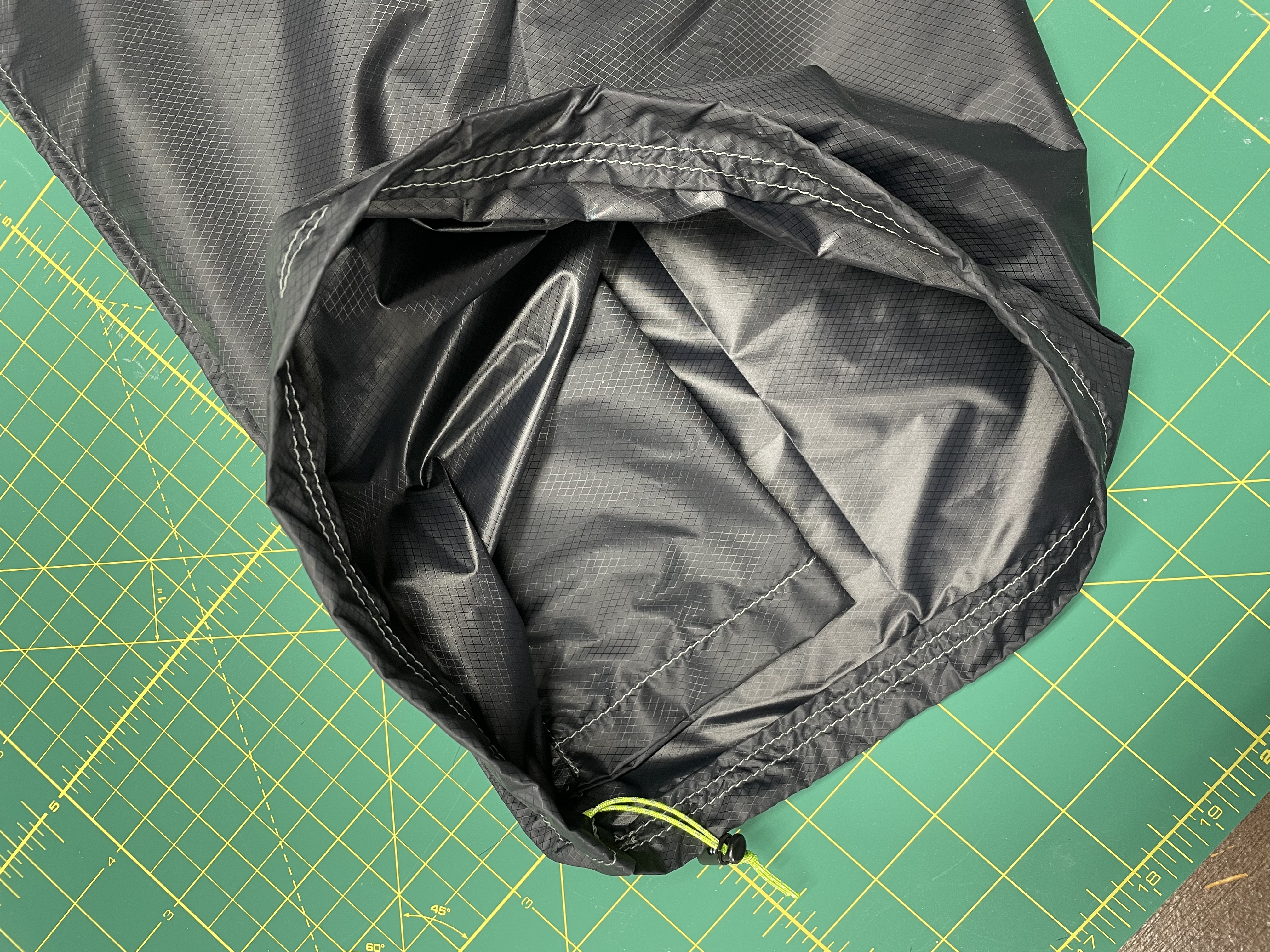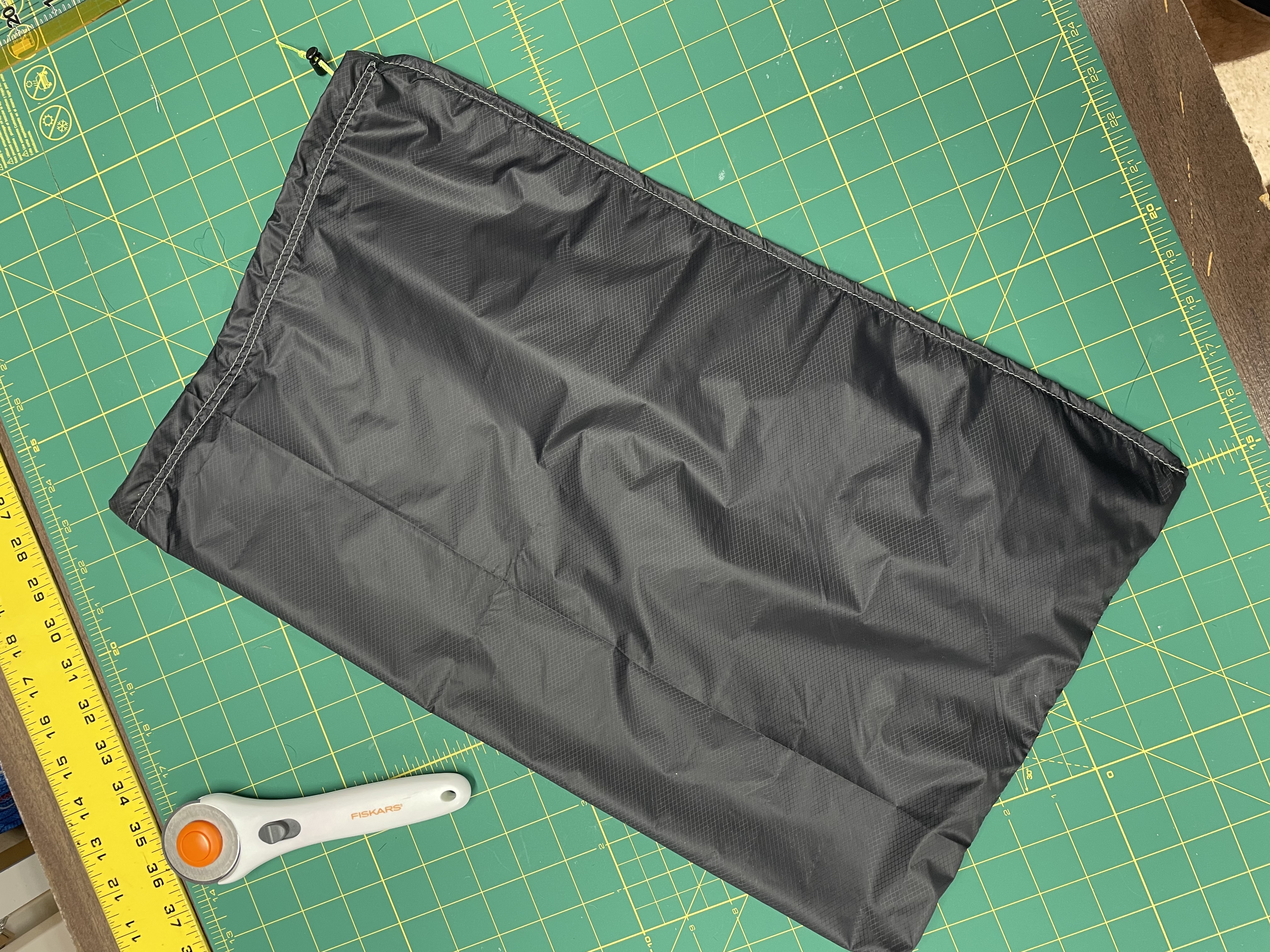For the main sack I cut a 21.5 inch x 27 inch rectangle. This gave me a roughly 20 inch long x 13 inch wide bag when factoring half inch seam allowances and rolled hem drawcord channel