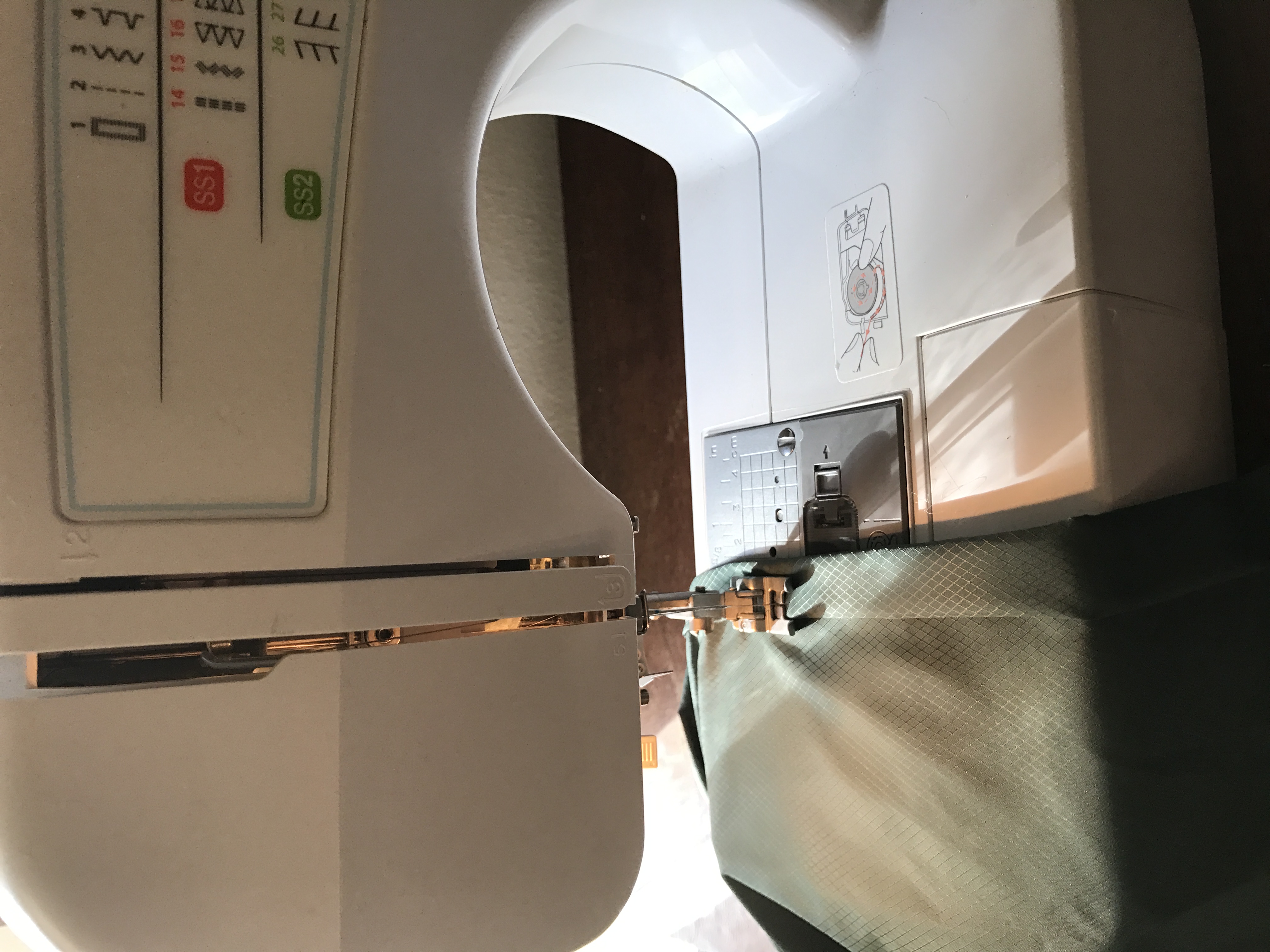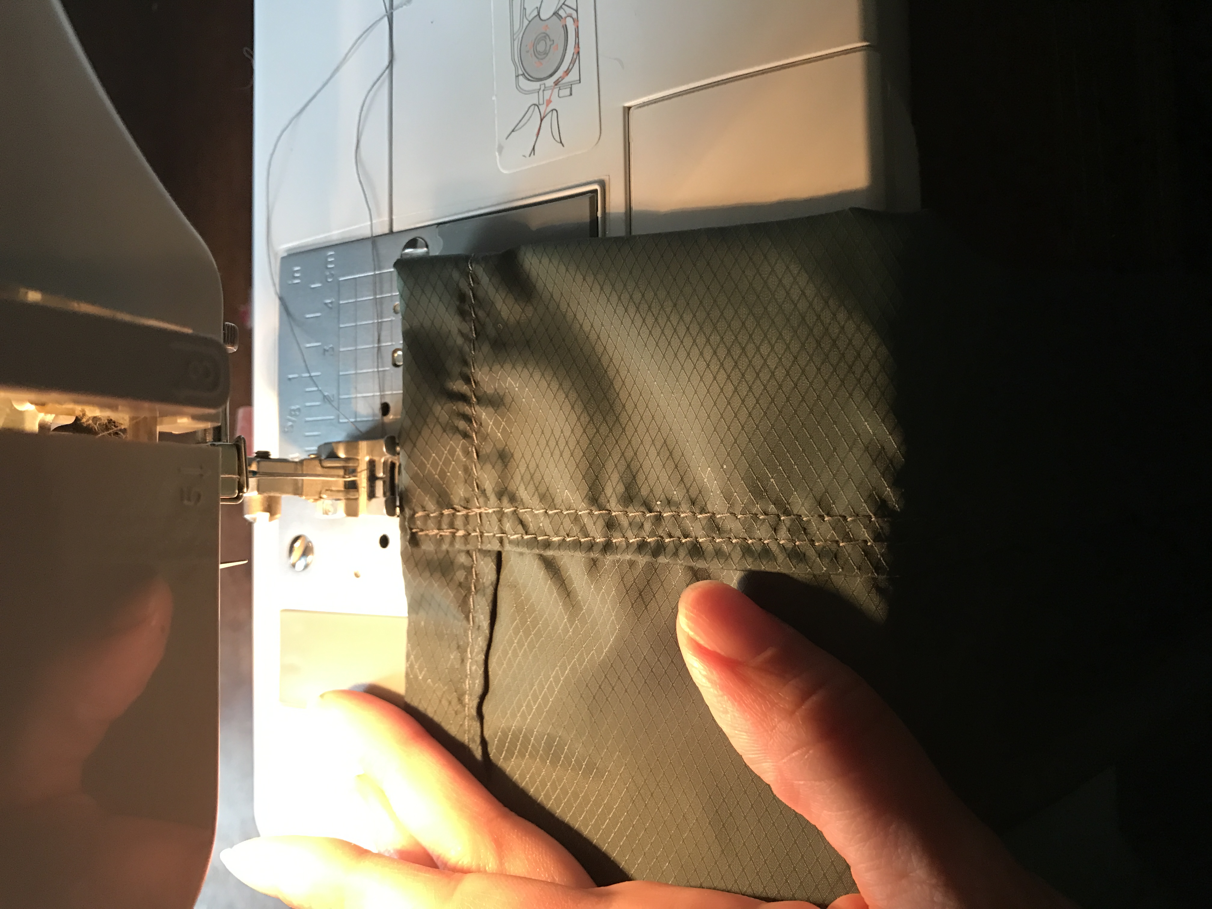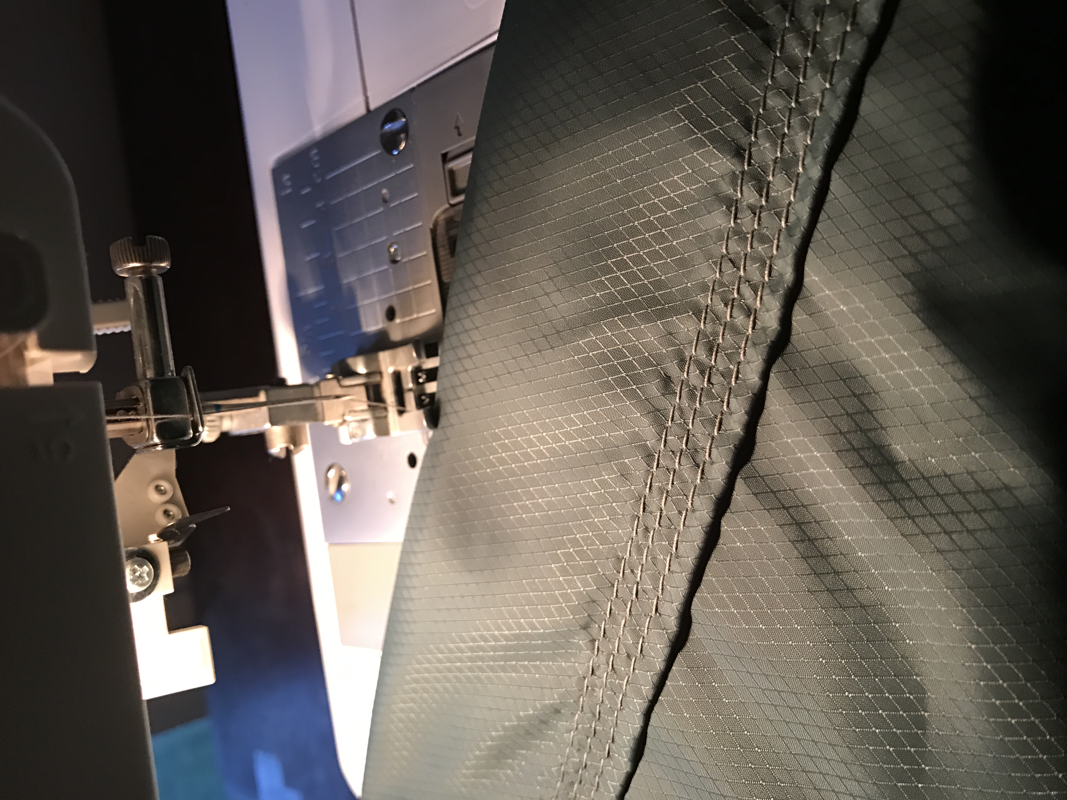 I did use pins here, but just a few. I added three rows of stitching as per the Ripstop by the Roll video.