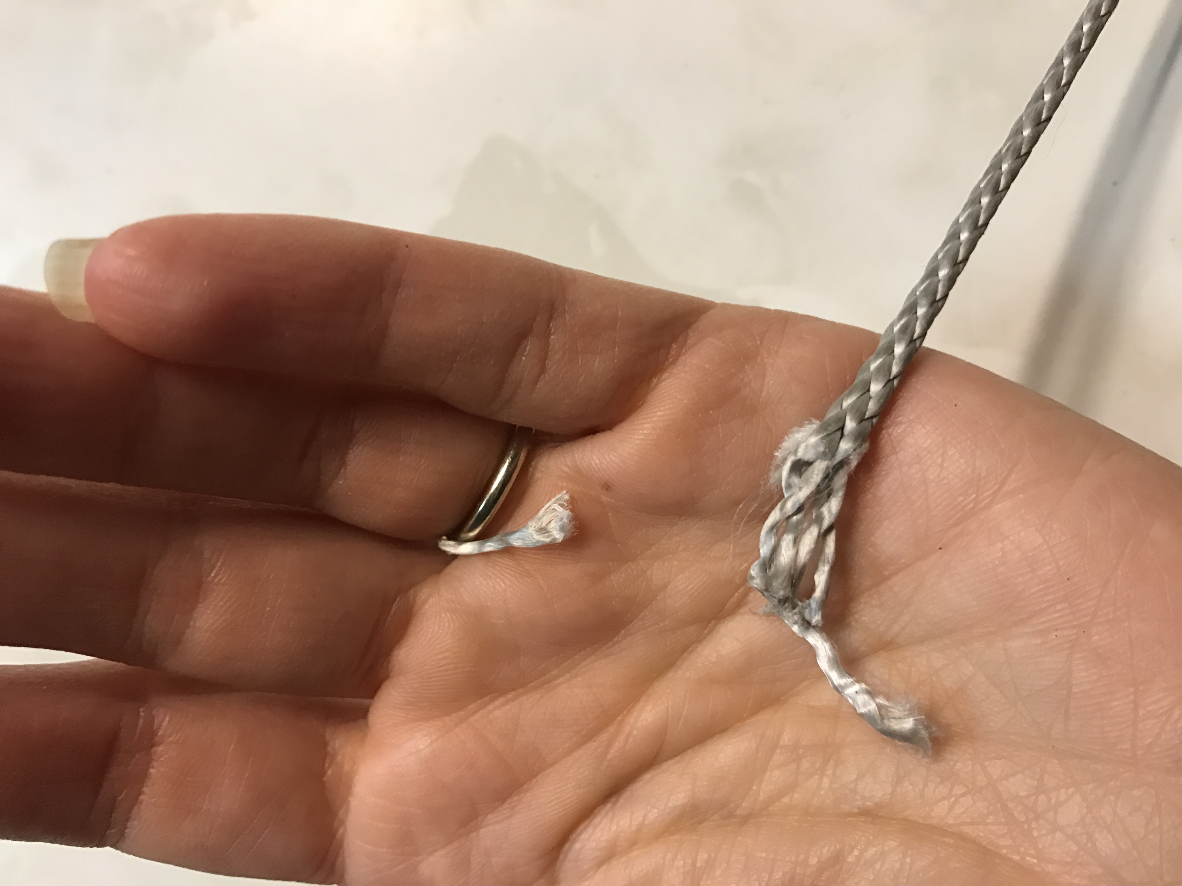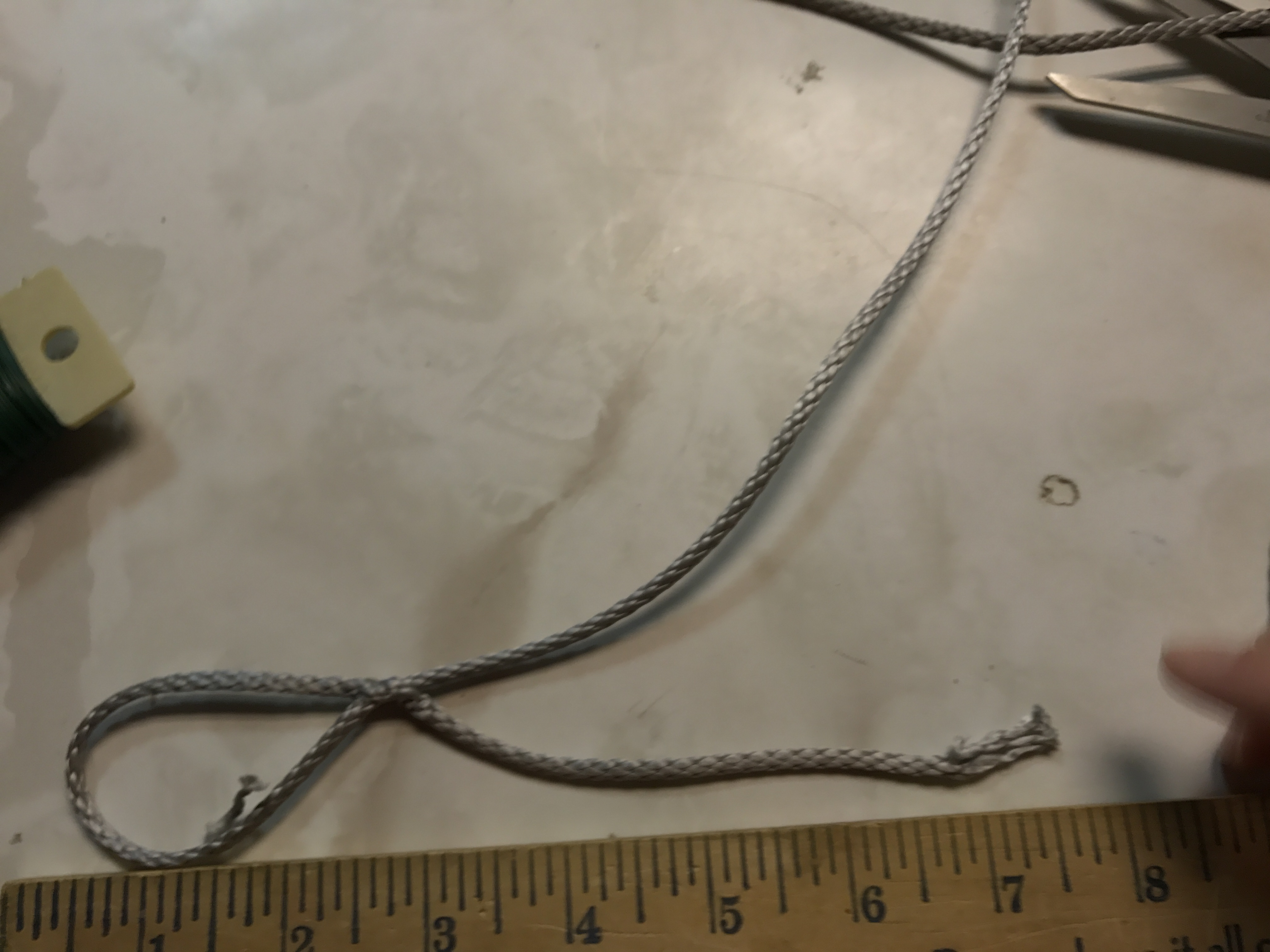 I couldn't find my loop turner, so I just used a piece of floral wire left over from a recent project. It was really too soft but I made it work. The first piece of wire I used was only 12 inches or so and on the second whoopie sling I slid the bury past the end of the wire and got hung up. A few fibers hung between the wires and caught, keeping me from finishing the bury. I had to cut the wire to free it and start over. Not a big deal. I definitely suggest using at least a 20 inch piece of wire to fish with.