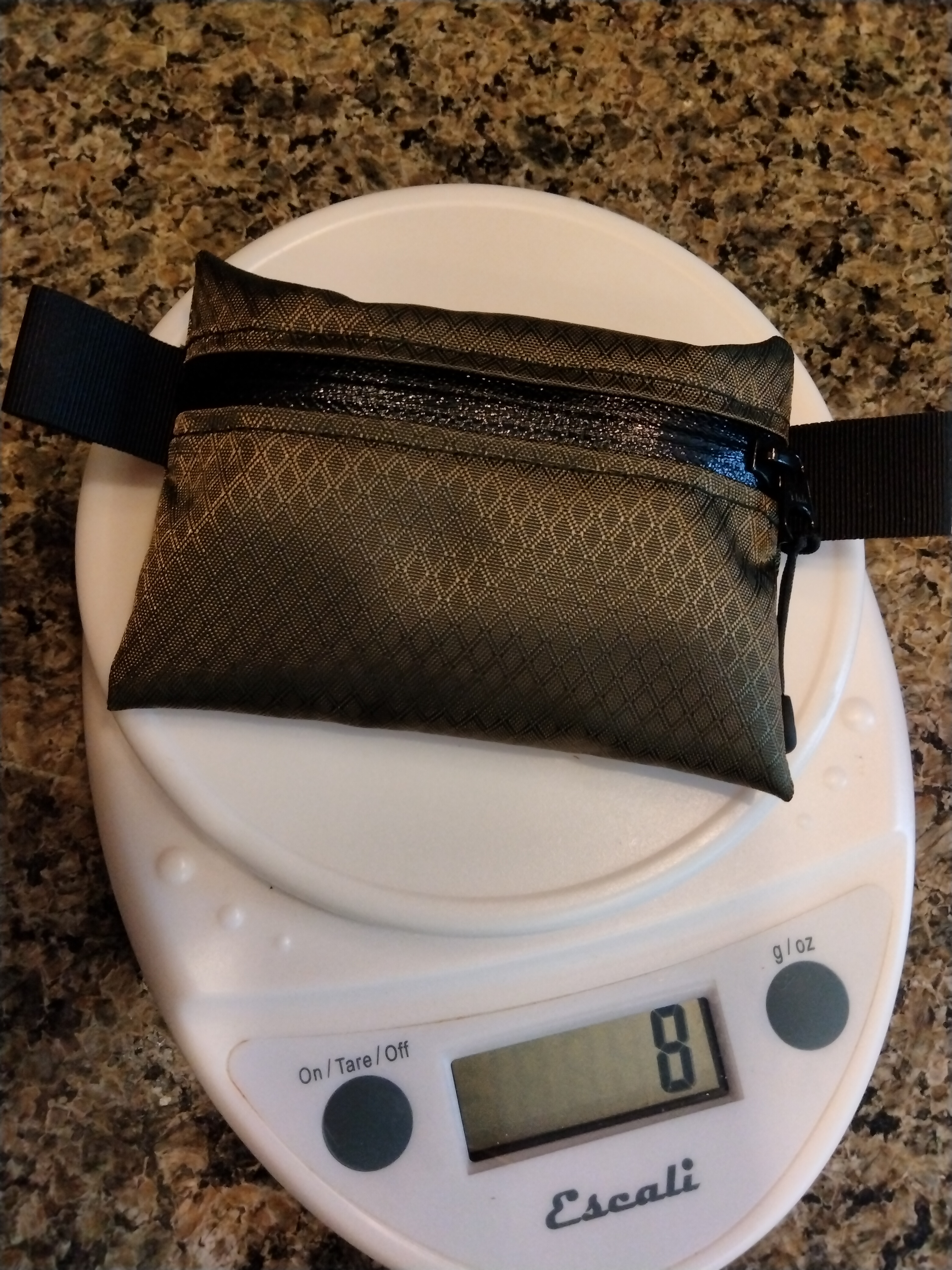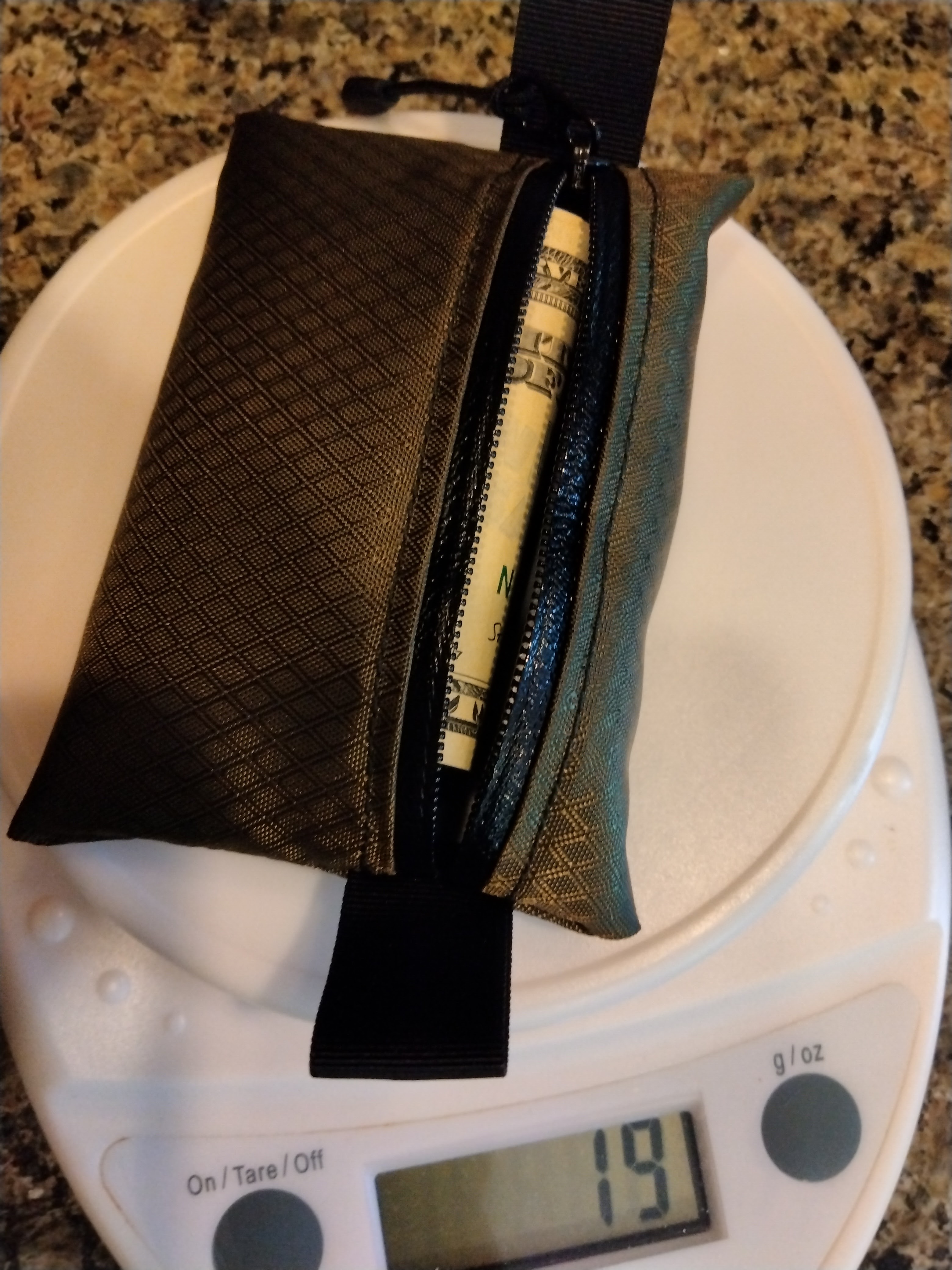 My first try at zippers, so I figured I'd go with a kit that had instructions, like the DIY little zip pouch, wallet sized. These are nice and light, 8g finished. ID, credit card, and 2 bills = 11g, so the contents will outweigh it pretty quickly. Loop pull tabs will make it easy to lanyard for safekeeping inside a pack or around neck.
