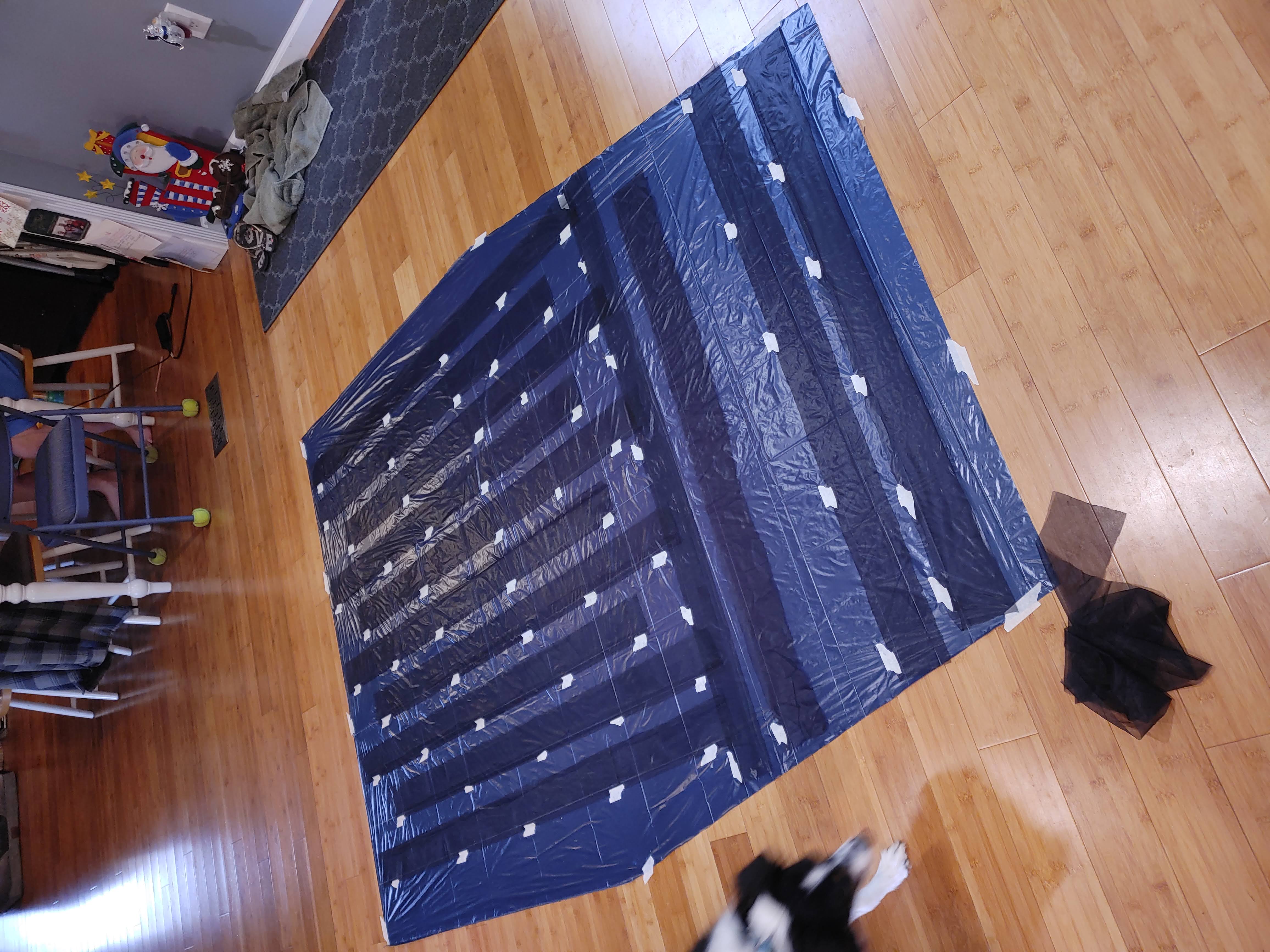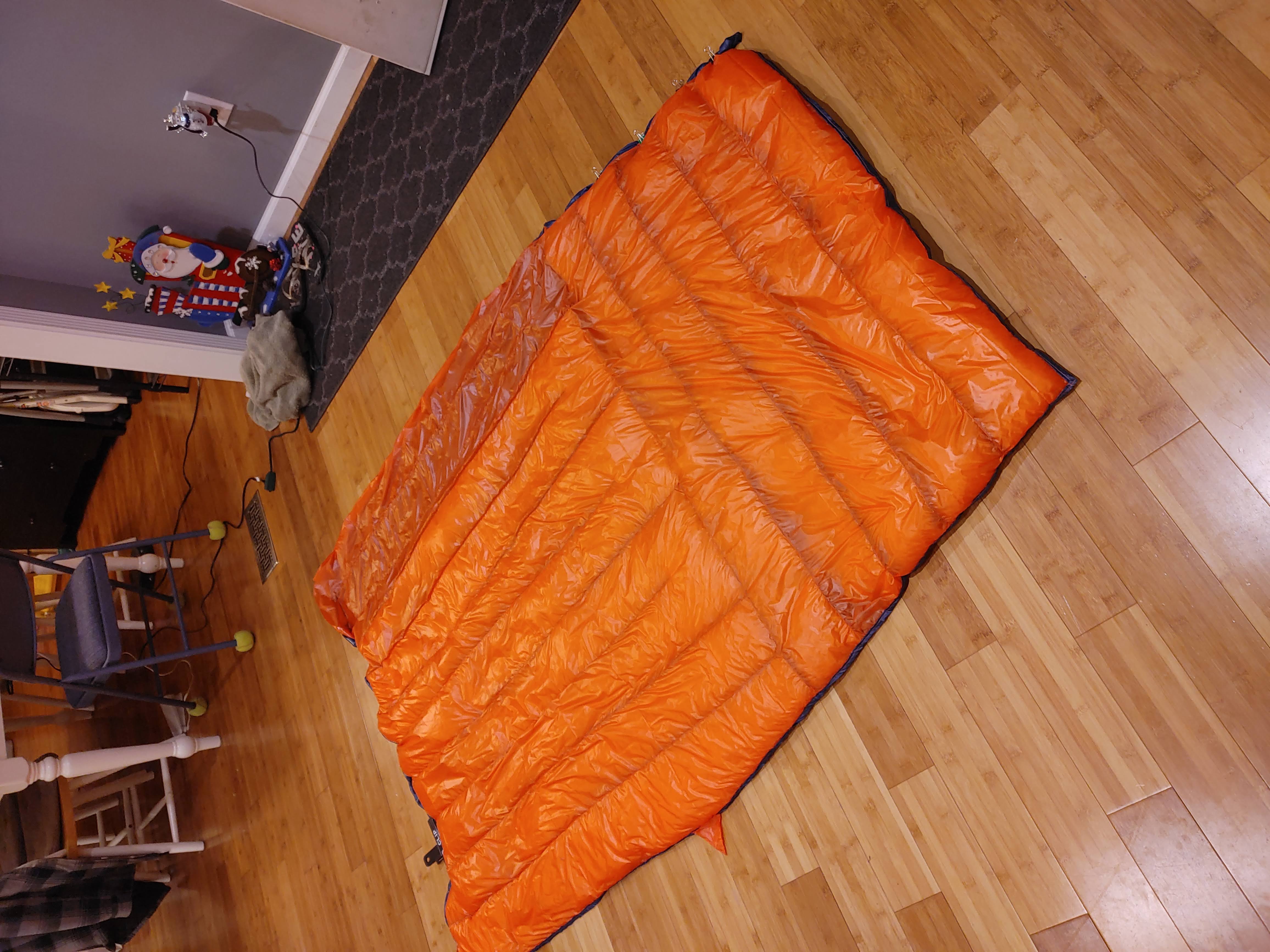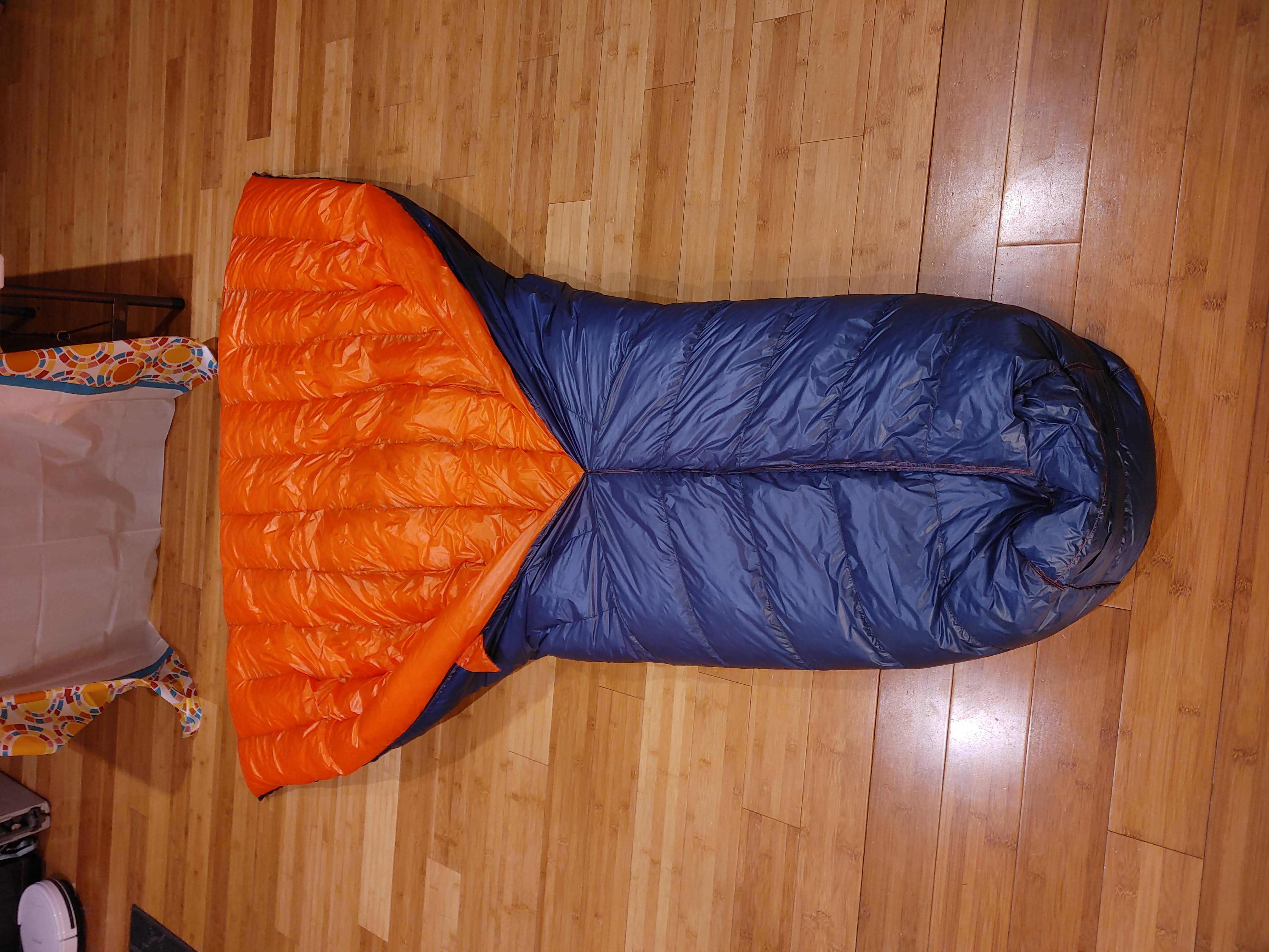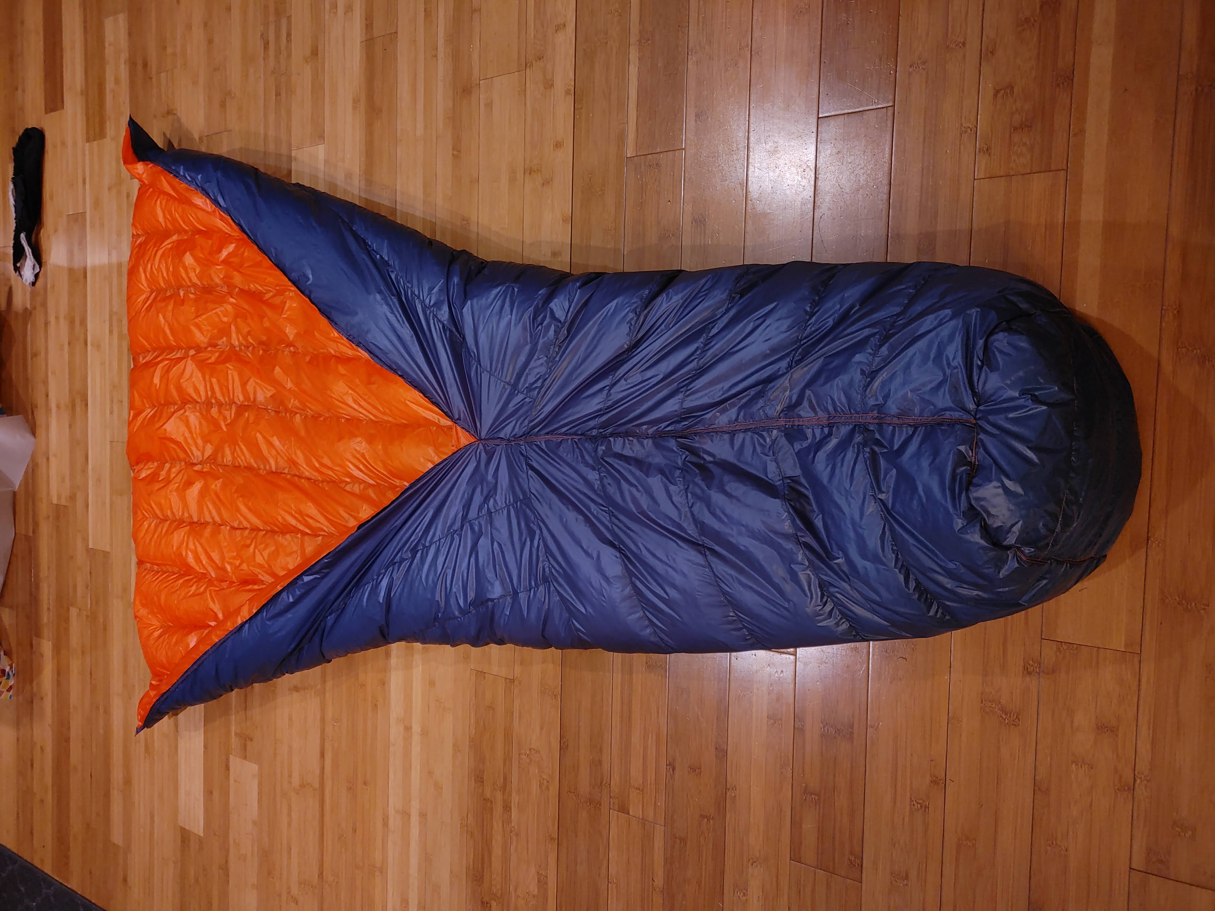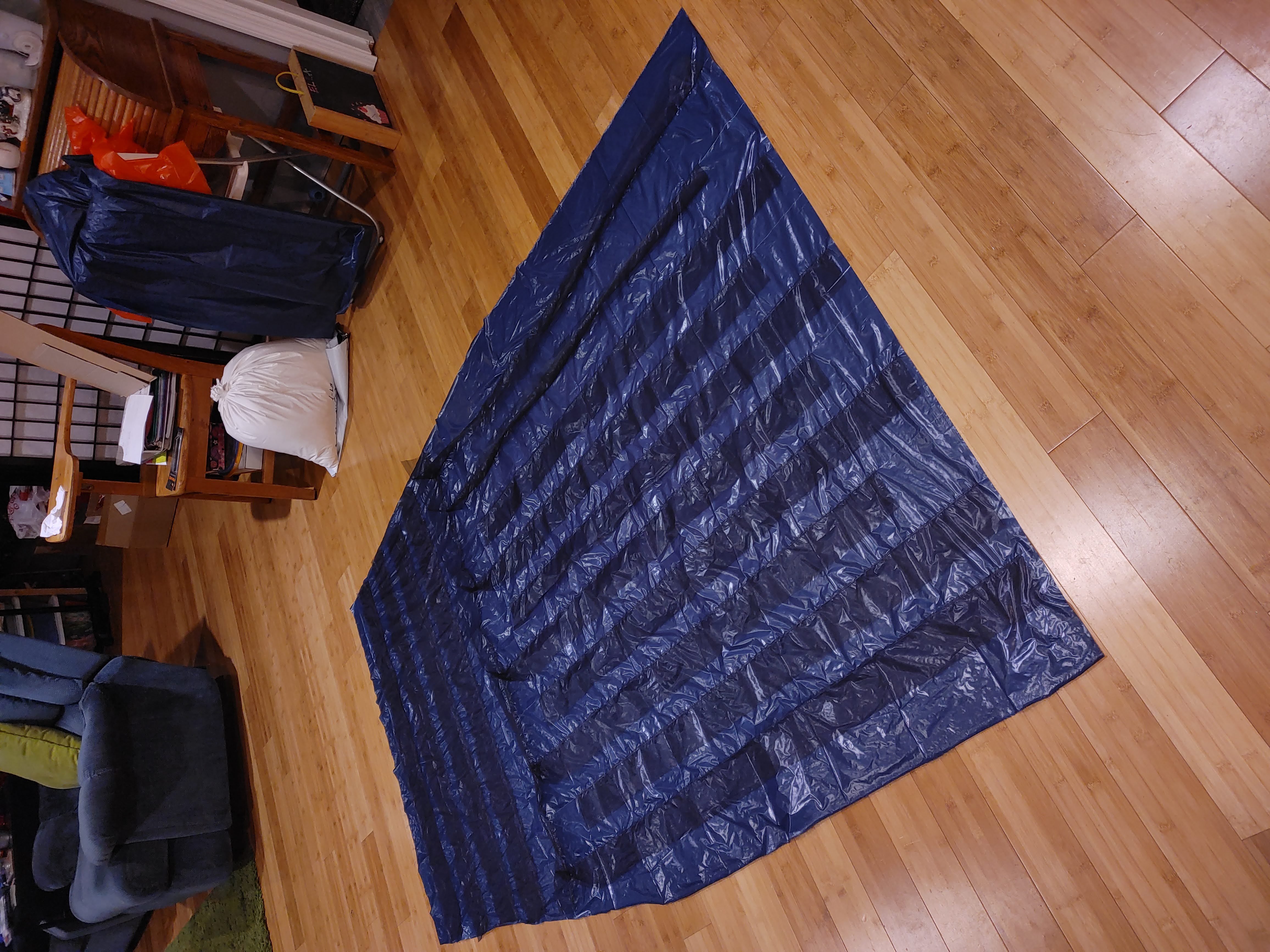 I used 0.66 oz MEMBRANE 10 Taffeta Nylon (Blaze Orange and Moroccan Blue, 3yds each), 50 ft of 0.67 oz Noseeum baffle material - 3.5" (should have bought 100ft), and 1lb of Down (from Amazon...sorry). The 50ft of mesh was not quite enough but I had some 0.5 Noseeum from a bugnet I made previously...it was more difficulty to work compared to the 0.67.