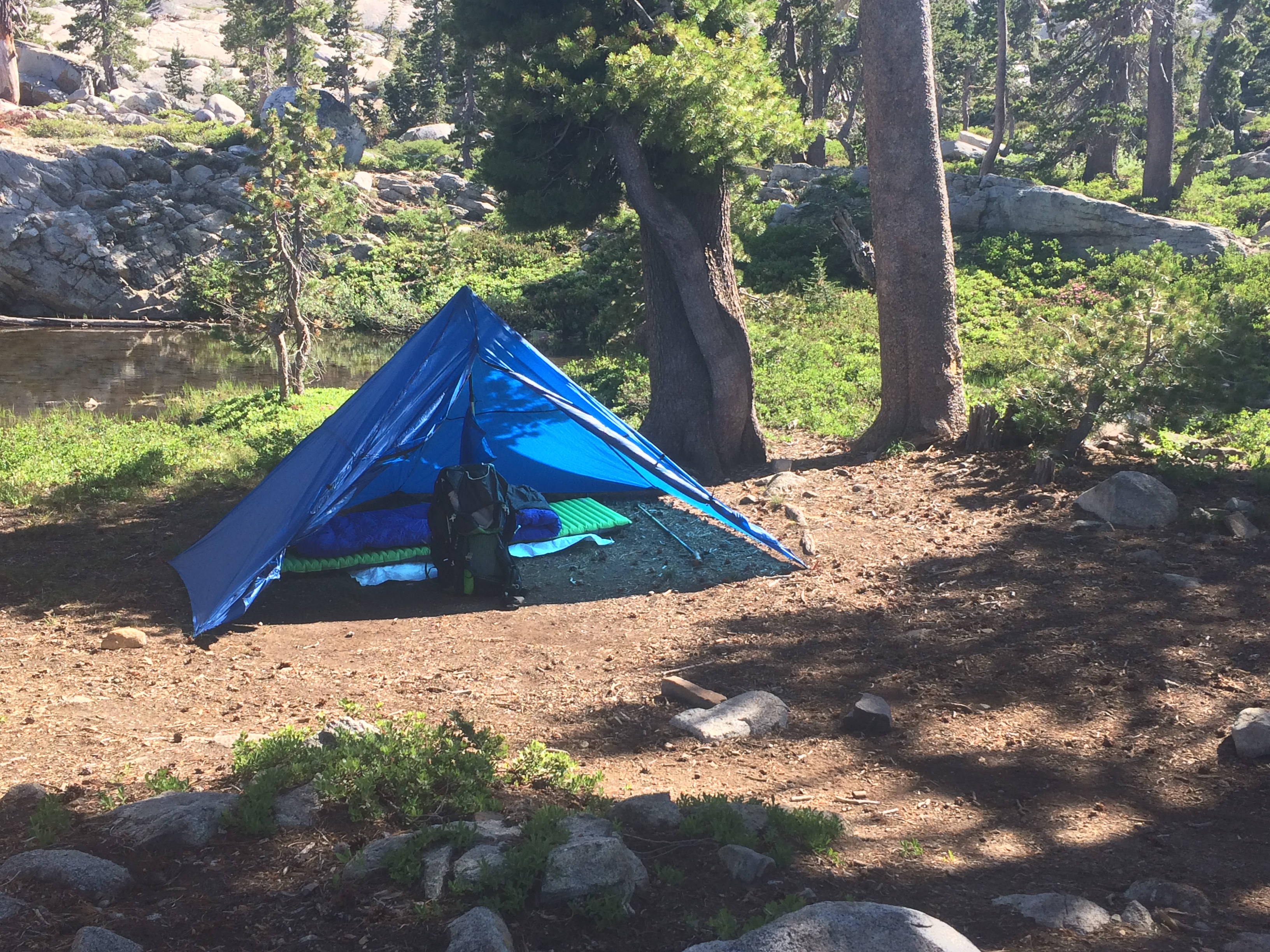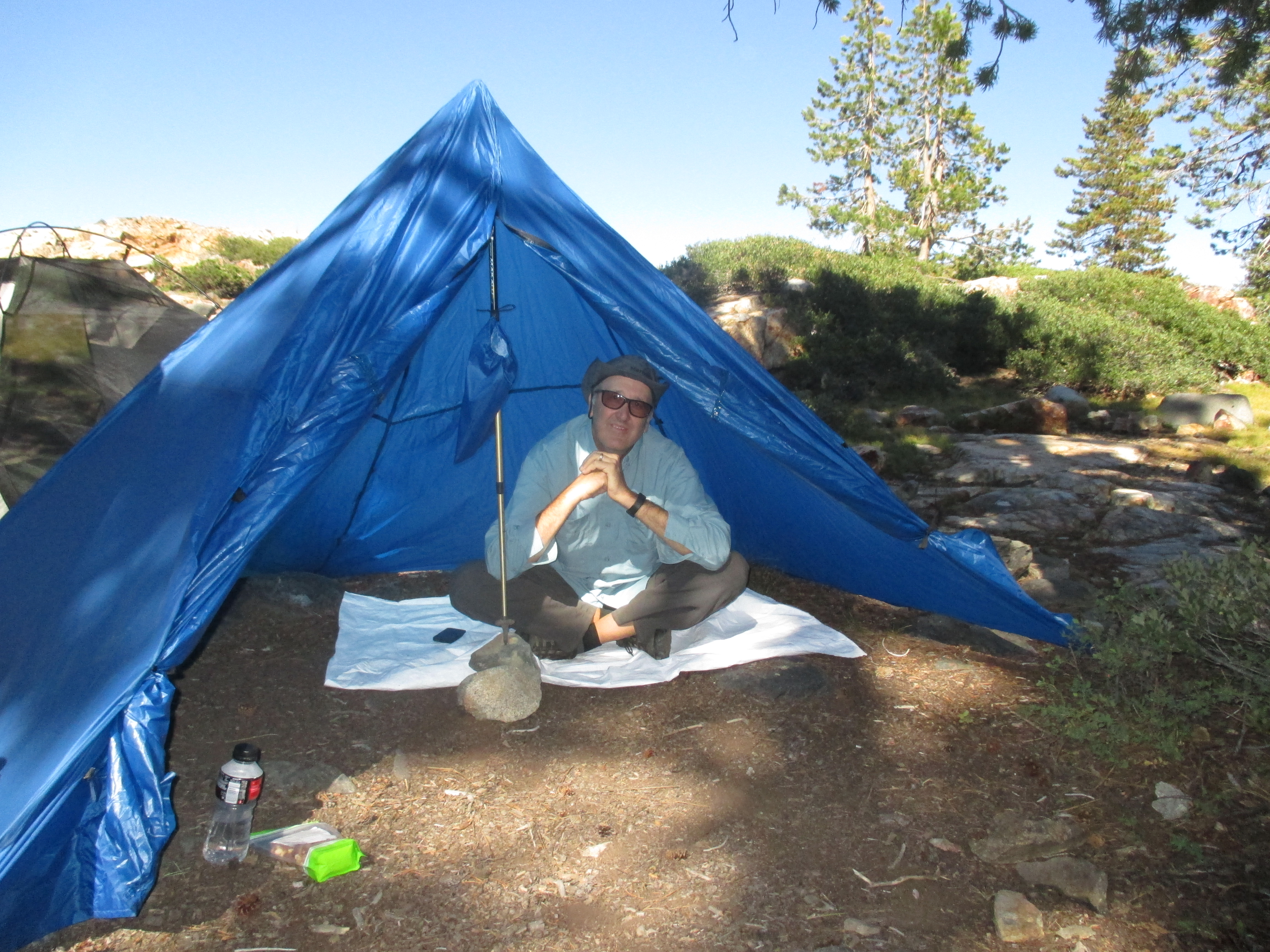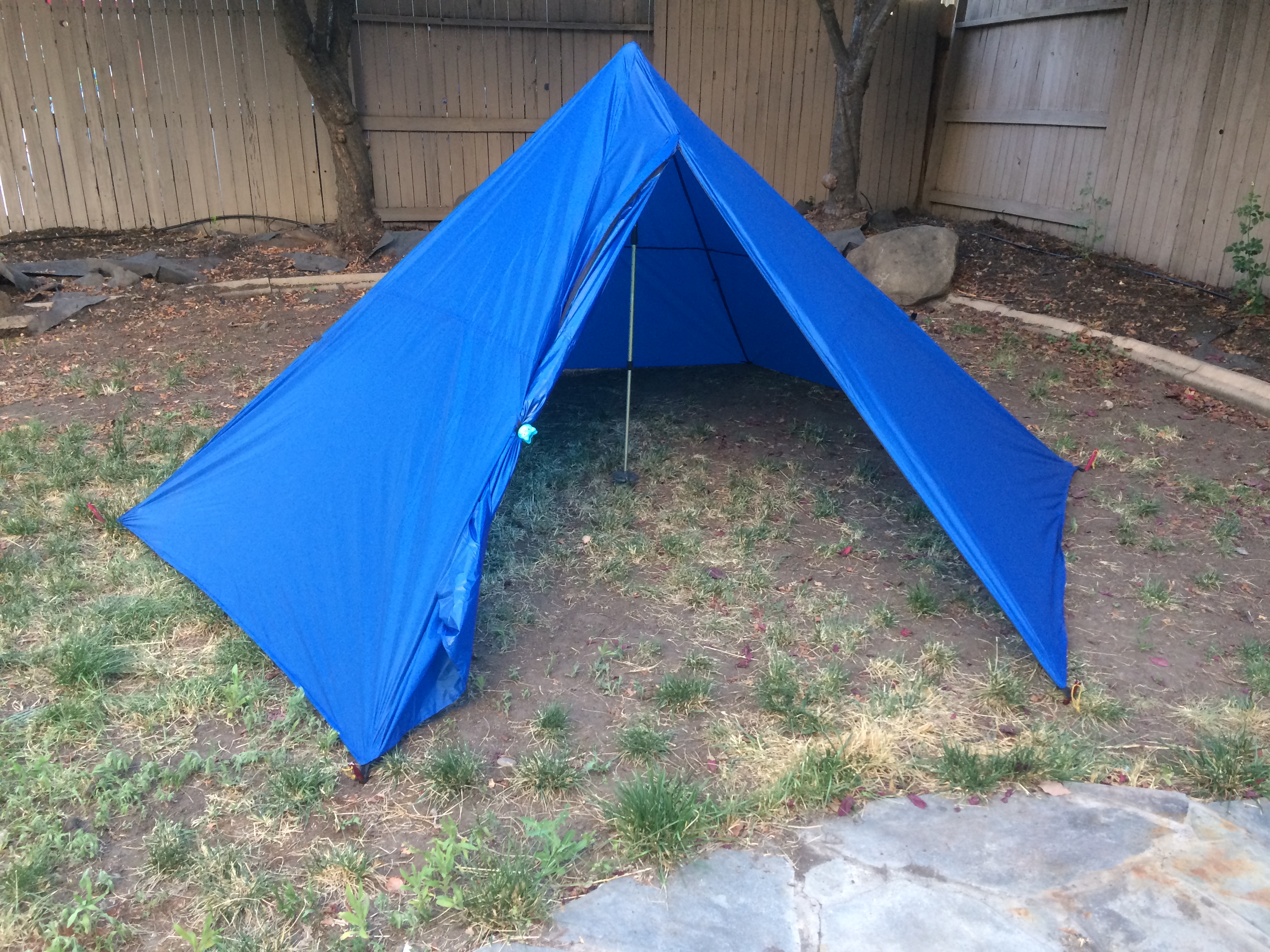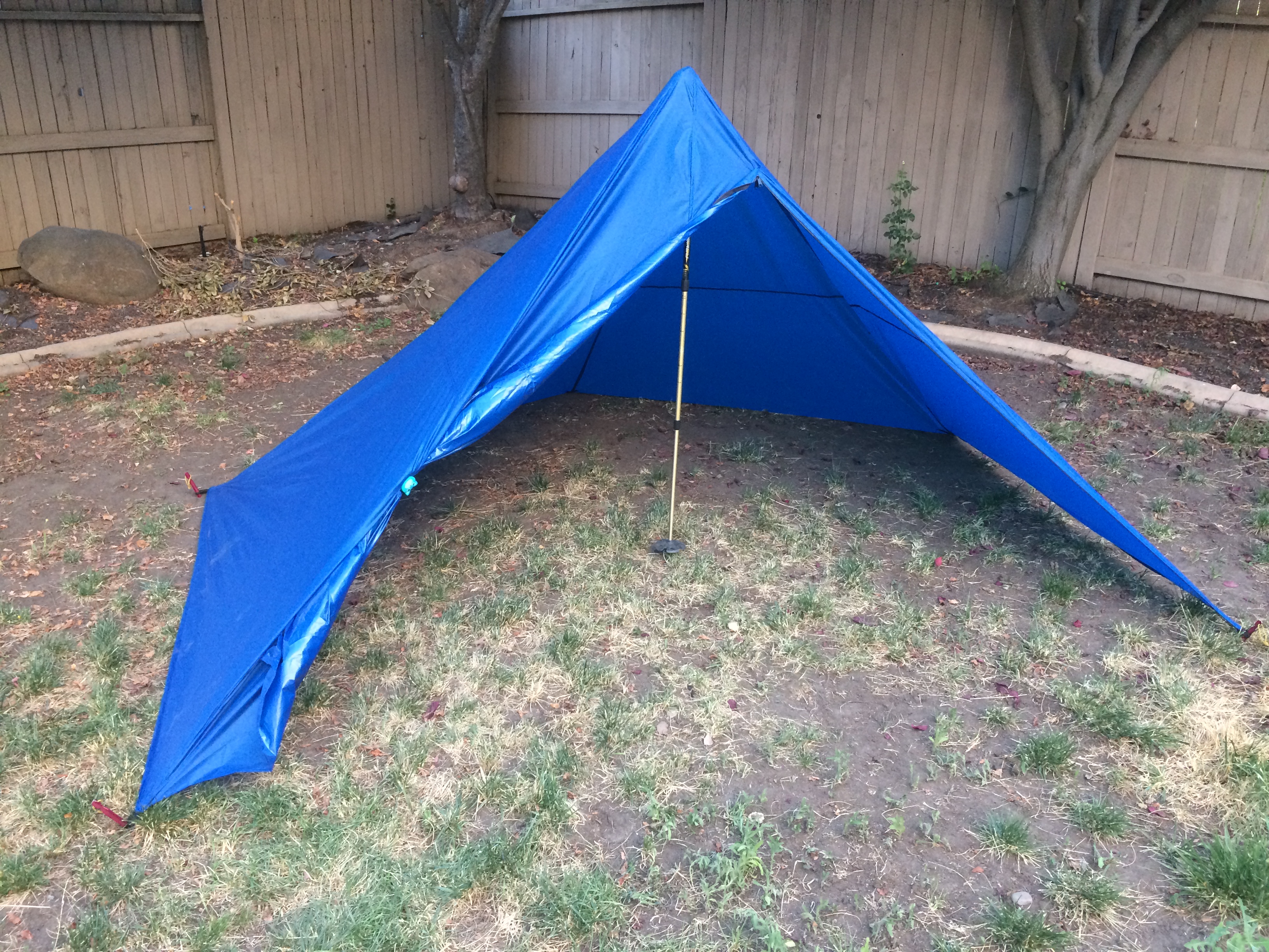 Setting up the shelter and getting the distance right can be a challenge, made easier by cutting a Tyvek ground cloth to shape, about 3/4 of the inside floor. Add loops that connect to four of the stakes, so that the shelter goes up quickly when tied to those four points.