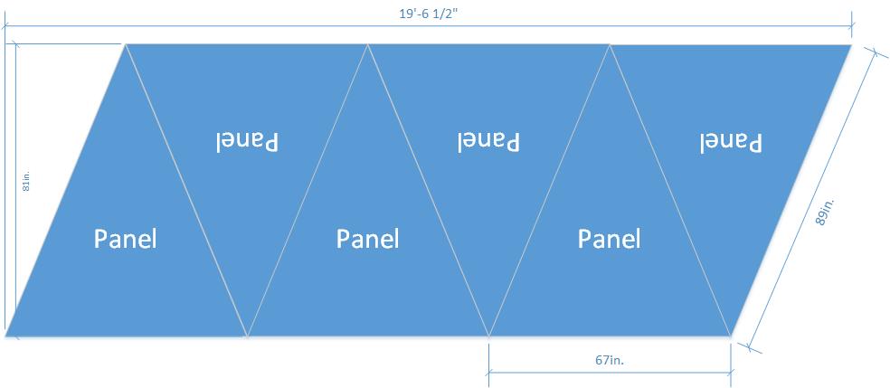 3) Mark and cut the six triangles, keeping the seam exactly at center, knowing that they'll be cut in alternating directions (will have some waste material...good for stuff sacks!)