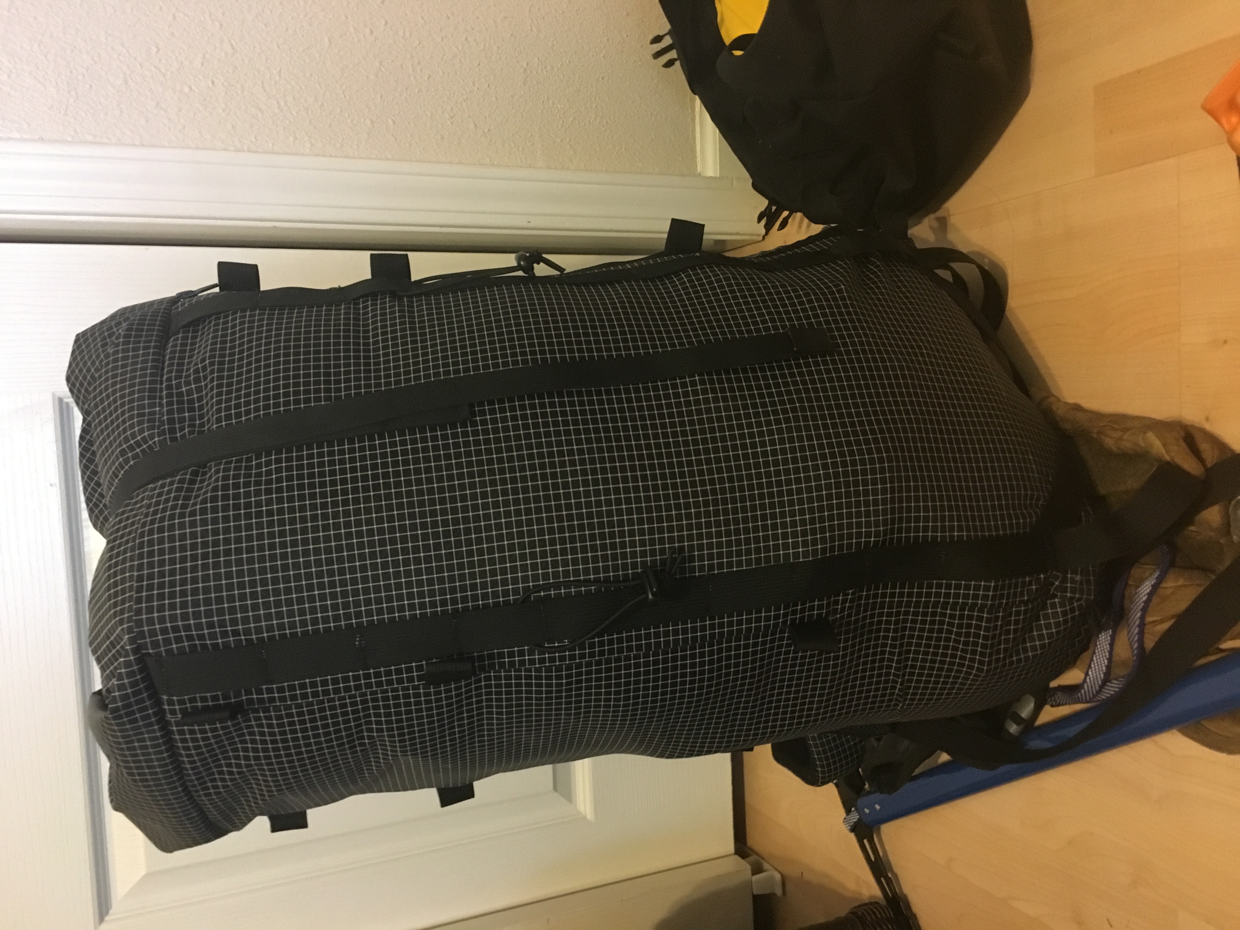 Its hard to find a big pack designed for splitters and skiers. I have made more than 6 different packs and here, I am submitting my most recent creation. I call it the Ultralight Chief. It is a 3888 cu in (63 liters) backpack, not counting the top pack. It is designed to carry more than the gear you need for multi-day winter excursions, because we all have to carry our favorite adult beverage along with all camping and ski/split gear, right? That's a lot of stuff! The Ultralight Chief weights under 3lbs with HPDE frame sheet and aluminum stay.