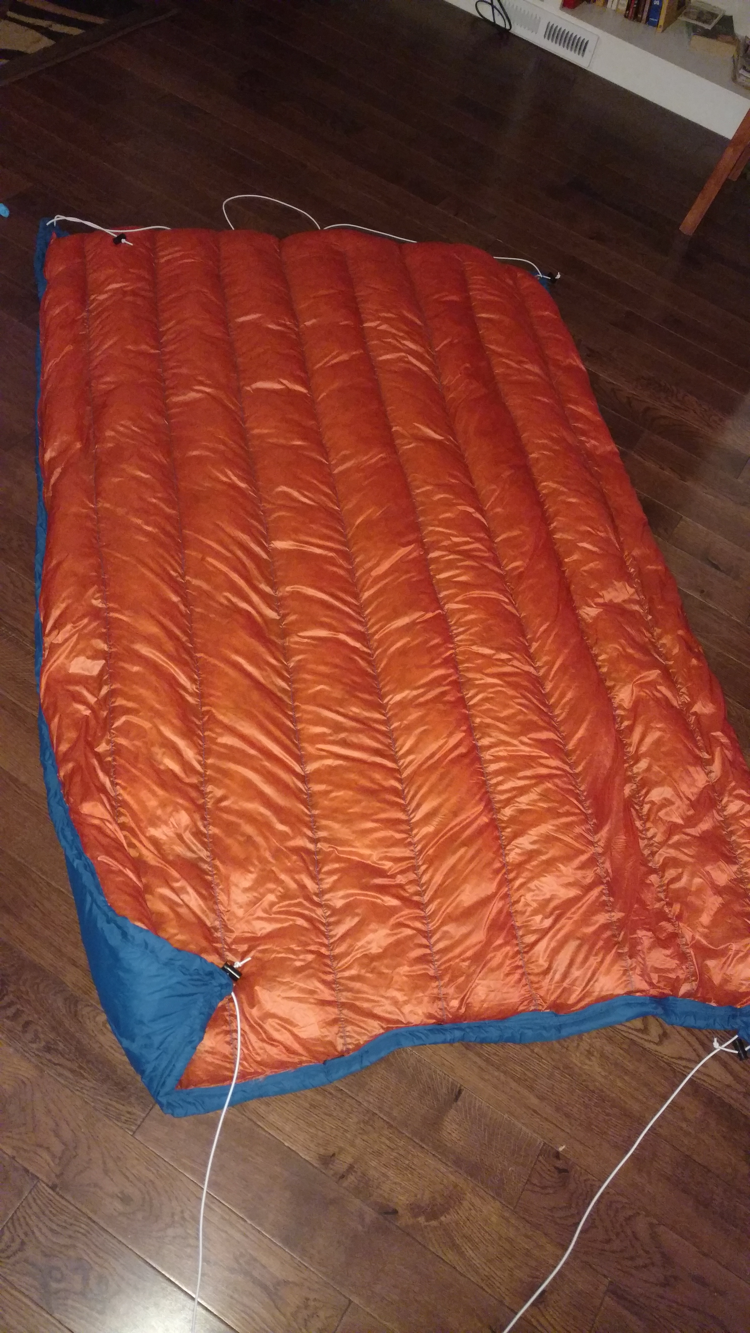 • This is a recent underquilt project that I put together.  After looking at my options online, I found that I could make my own quilt of similar or better quality for a much better price.  I enjoy sewing and thinking through projects like this, so it was fun to put together.  I used a number of online resources and youtube videos to come up with my construction methods.