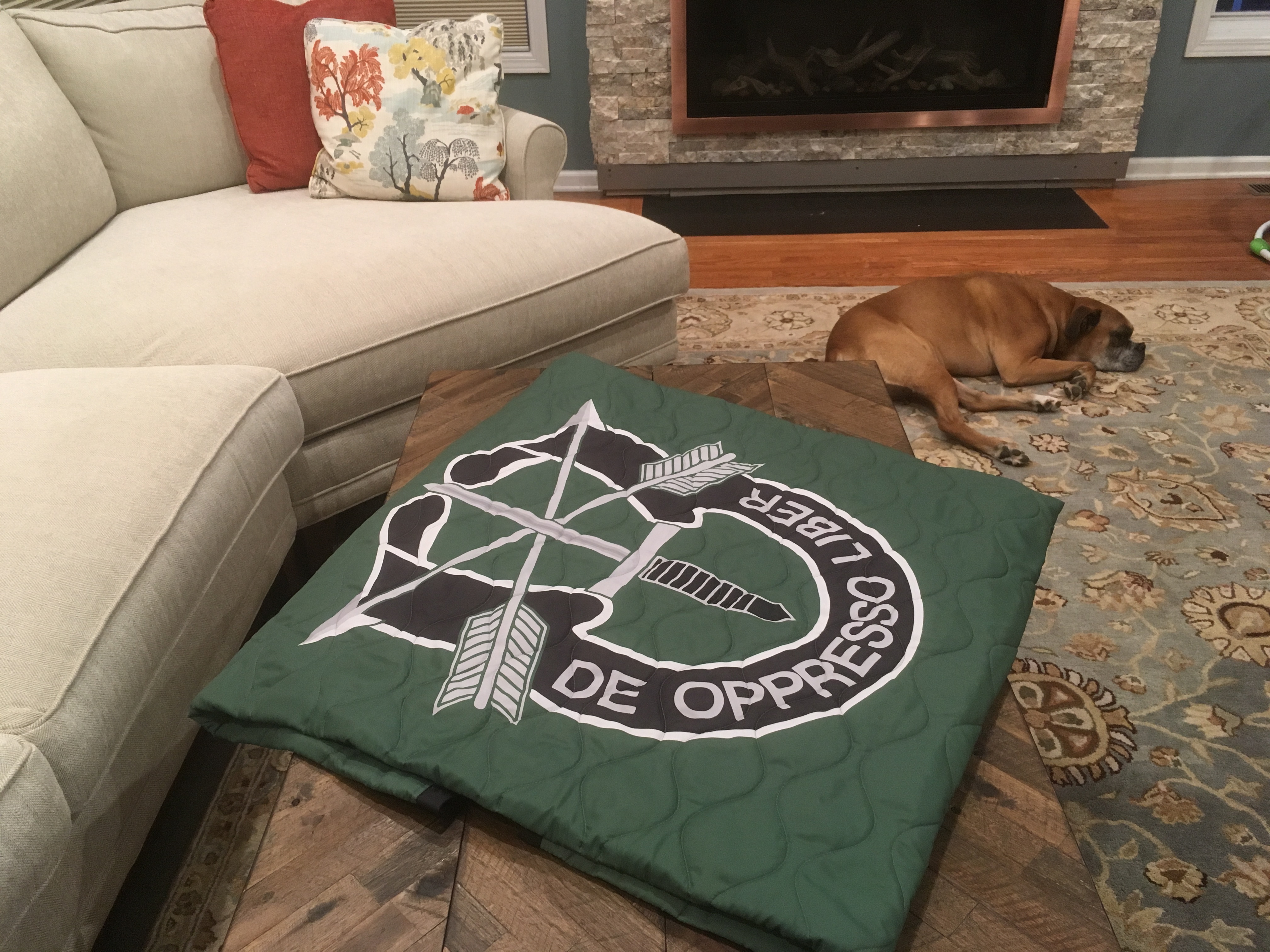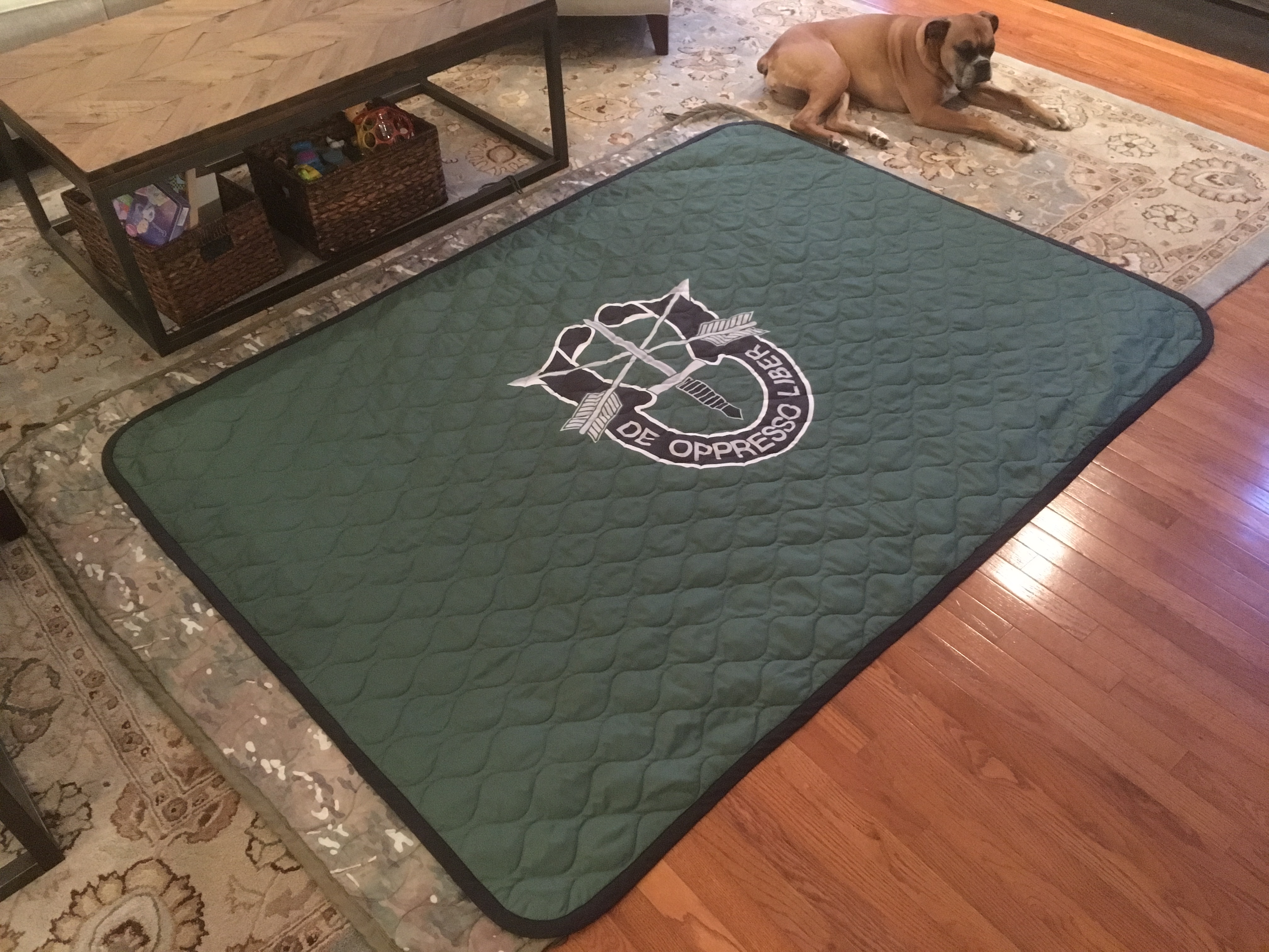 This is THE original custom "woobie" by Woobie USA. Woobie USA makes standard and custom print woobies for any and all blanket uses. Don't know what a woobie is?...ask any veteran. The woobie is issued in the military as a "poncho liner" and is regarded as the single best piece of military issue gear ever invented. Don't believe me, just Google it. The website is coming soon: woobieusa.com